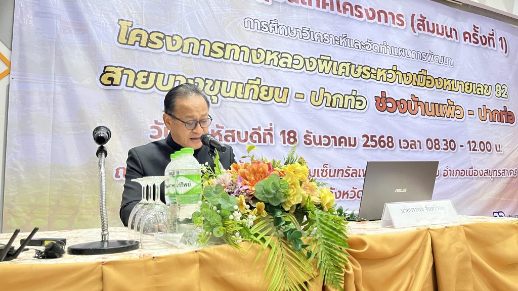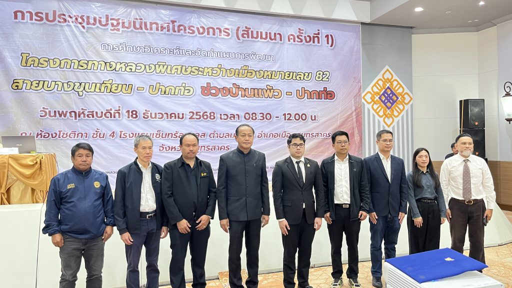 กรมทางหลวงจัดปฐมนิเทศ ทบทวนโครงการมอเตอร์เวย์ M82 ช่วงบ้านแพ้ว-ปากท่อ ให้สอดคล้องกับสภาพเศรษฐกิจ สังคม และสิ่งแวดล้อม หลังรูปแบบการใช้ที่ดินเปลี่ยนแปลงไป ส่งผลต่อการเดินทางและขนส่งสินค้า
