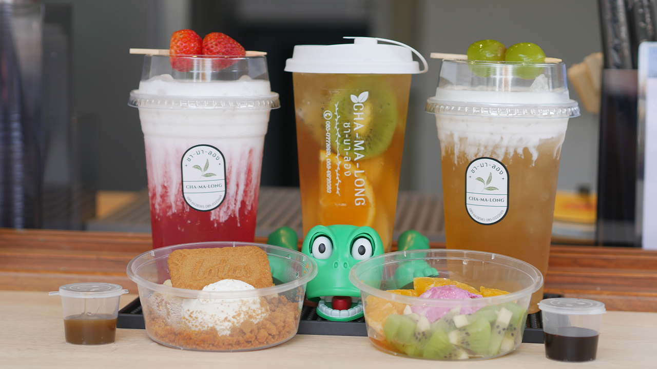 “ชา-มา-ลอง” (Cha-Ma-Long) ร้านชาผลไม้และกรีกโยเกิร์ต สดชื่นไปกับชาเนสที และชาผลไม้สด เริ่มต้น 25 บาท เลือกความหวานได้ 3 ระดับ (หวานปกติ-หวานน้อย-ไม่หวาน) สำหรับเมนูแนะนำ ชาองุ่นบุกครีมชีส (45 บาท) ชาสตรอเบอรี่บุกครีมชีส (45 บาท) ชาเย็นครีมชีส (40 บาท) และชาผลไม้ (55 บาท) รวมถึงชาผลไม้แบบขวด ราคา 25 บาท มีทั้งชาพีช ชาองุ่น และชาสตรอเบอรี่