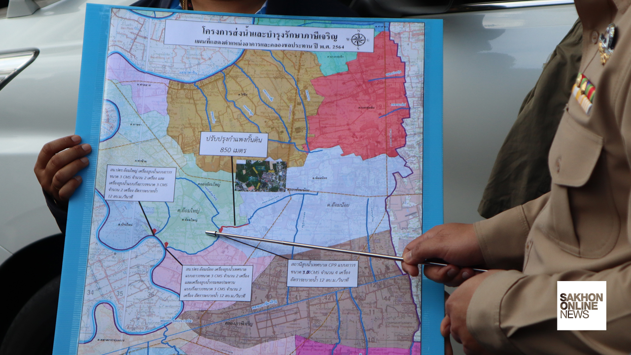 นายประพิศ จันทร์มา อธิบดีกรมชลประทาน กล่าวว่า เนื่องจากสถานการณ์ปัจจุบันเป็นช่วงฤดูฝน ได้รับการร้องเรียนจากพื้นที่ว่าอาคารที่ใช้ระบายน้ำเกิดการชำรุดได้รับความเสียหาย วันนี้ได้มีโอกาสดูสภาพจริงว่าเป็นอย่างไร พบว่ากำแพงกันดินหน้าประตูระบายน้ำเกิดพังถล่มลงมาประมาณ 60 เมตร ในการแก้ไขปัญหาเบื้องต้นต้องกำจัดจุดอ่อนก่อน เนื่องจากต้องใช้คลองอ้อมน้อยเป็นคลองหลักในการระบายน้ำออกจากพื้นที่ หากเครื่องมือตรงนี้ชำรุดแล้วจะระบายน้ำลำบาก ดังนั้นเบื้องต้นแผนในระยะสั้นเร่งด่วน ต้องหาชีทไพล์ (Sheet Pile) หรืออะไรก็ตามที่จะทำให้กำแพงกันดินไม่พังเพิ่มเติม ขณะเดียวกันก็ได้เรียนกับทางนายกเทศมนตรีนครอ้อมน้อย ต้องมีการสำรวจและออกแบบเพื่อให้รองรับการระบายน้ำในอนาคต ตรงนี้ก็ต้องว่ากันไปอีกขั้นตอนหนึ่ง