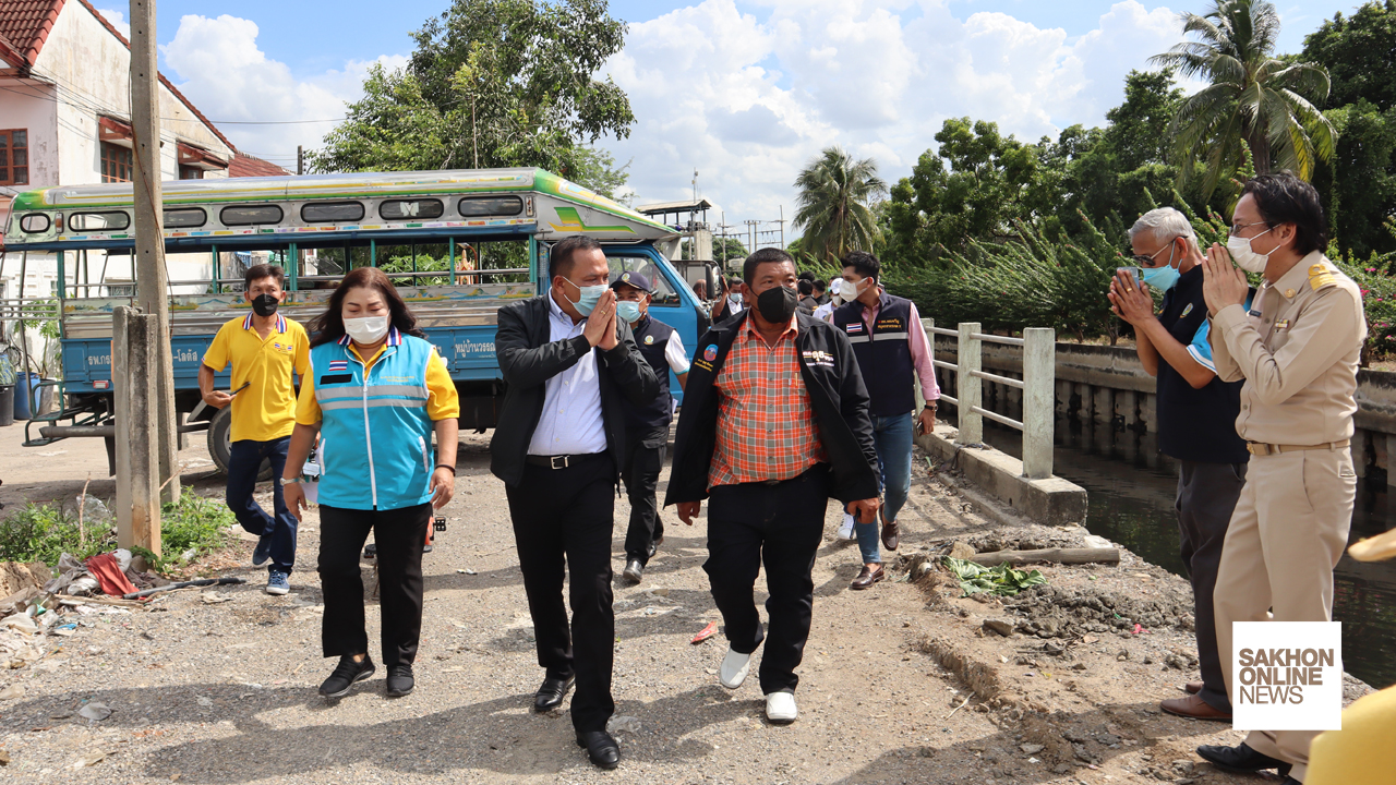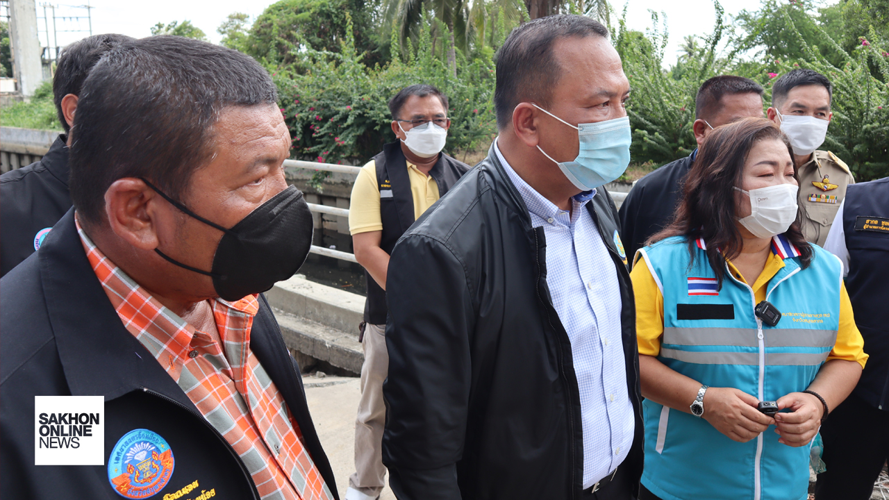 อธิบดีกรมชลประทาน พร้อม ส.ส. สมุทรสาคร และนายกเทศมนตรีนครอ้อมน้อย ลงพื้นที่ตรวจสอบและหาแนวทางแก้ไขปัญหากำแพงกันดินทรุด บริเวณใกล้ประตูระบายน้ำอ้อมน้อย อ.กระทุ่มแบน จ.สมุทรสาคร เบื้องต้นพบการทรุดตัว 3 จุด