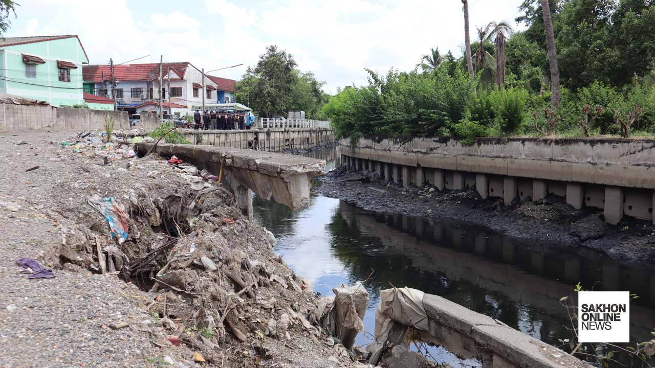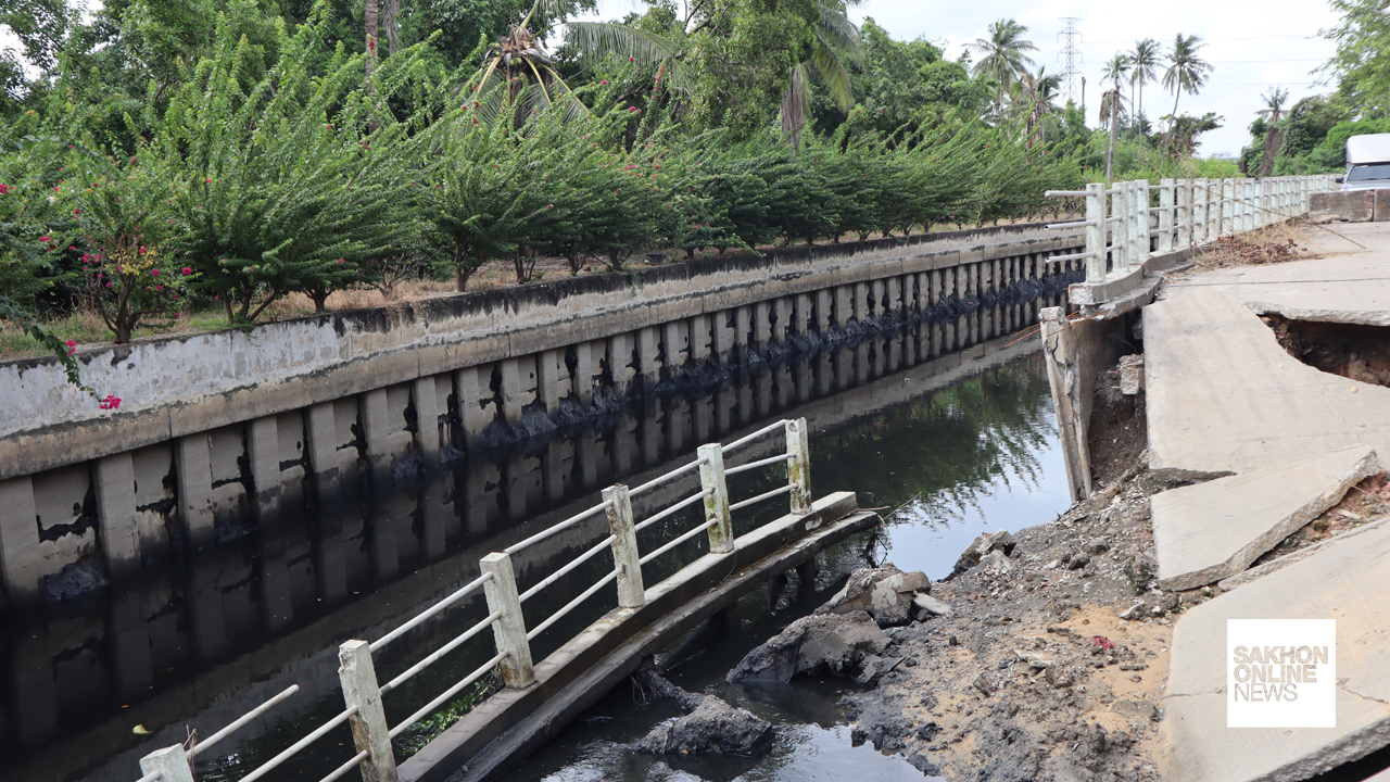 ทางด้านนายบุญชู นิลถนอม นายกเทศมนตรีนครอ้อมน้อย บอกว่า กำแพงกันดินก่อสร้างมานานกว่า 20 ปีแล้ว ประกอบกับสภาพของน้ำในคลองที่มีการปนเปื้อนของสารเคมีจากโรงงานอุตสาหกรรม ทำให้เกิดปัญหาเหล็กเสื่อมสภาพจนสึกกร่อนแตกร้าวและทรุดตัว ขณะนี้พบการทรุดตัวแล้ว 3 จุด ส่วนจุดอื่น ๆ นั้นแม้จะยังไม่ทรุดถึงขั้นพังทลายลงไปในคลอง แต่ก็มีรอยแตกร้าว หากปล่อยทิ้งไว้นานปัญหาอาจบานปลายและส่งผลกระทบต่อตัวประตูระบายน้ำ
