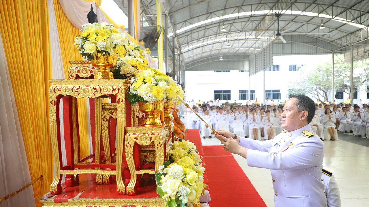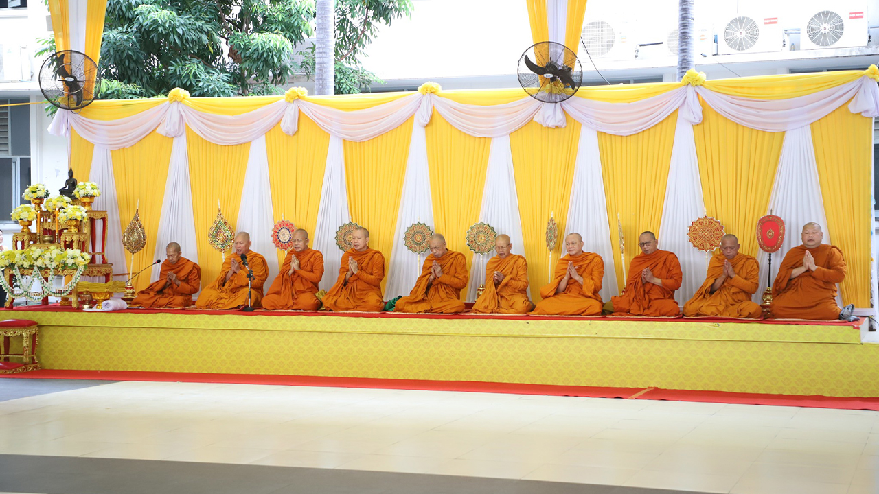 เวลา 07.30 น. เป็นพิธีสวดพระพุทธมนต์ และบุญตักบาตรถวายพระราชกุศล เนื่องในวันนวมินทรมหาราช โดยรองผู้ว่าราชการจังหวัดสมุทรสาคร รักษาราชการแทนผู้ว่าราชการจังหวัดสมุทรสาคร ประธานในพิธีฯ จุดธูปเทียนบูชาพระรัตนตรัย จุดเครื่องทองน้อยหน้าพระบรมฉายาลักษณ์ พระบาทสมเด็จพระบรมชนกาธิเบศร มหาภูมิพลอดุลยเดชมหาราช บรมนาถบพิตร จากนั้นเจ้าหน้าที่อาราธนาศีล พระเทพสาครมุนี ที่ปรึกษาเจ้าคณะภาค 14 เจ้าอาวาสวัดเจษฎาราม พระอารามหลวง พระราชวัชรสาครคณี เจ้าคณะจังหวัดสมุทรสาคร เจ้าอาวาสวัดหลักสี่ราษฎร์สโมสร พร้อมพระสงฆ์ทรงสมณศักดิ์ รวม 10 รูป ให้ศีล สวดพระพุทธมนต์ ต่อด้วยประธานในพิธีฯ พร้อมด้วยข้าราชการชั้นผู้ใหญ่ ถวายเครื่องไทยธรรม และทอดผ้าไตรแก่พระสงฆ์สมณศักดิ์ จำนวน 10 ไตร พระสงฆ์สดับปกรณ์ ถวายดิเรก ประธานในพิธีฯ พร้อมผู้ร่วมพิธีกรวดน้ำ เป็นอันจบพิธีสงฆ์ จากนั้นประธานในพิธีฯ นำทุกภาคส่วนร่วมทำบุญตักบาตรข้าวสารอาหารแห้งแด่พระสงฆ์ จำนวน 89 รูป เพื่อถวายพระราชกุศล น้อมรำลึกในพระมหากรุณาธิคุณอันหาที่สุดมิได้