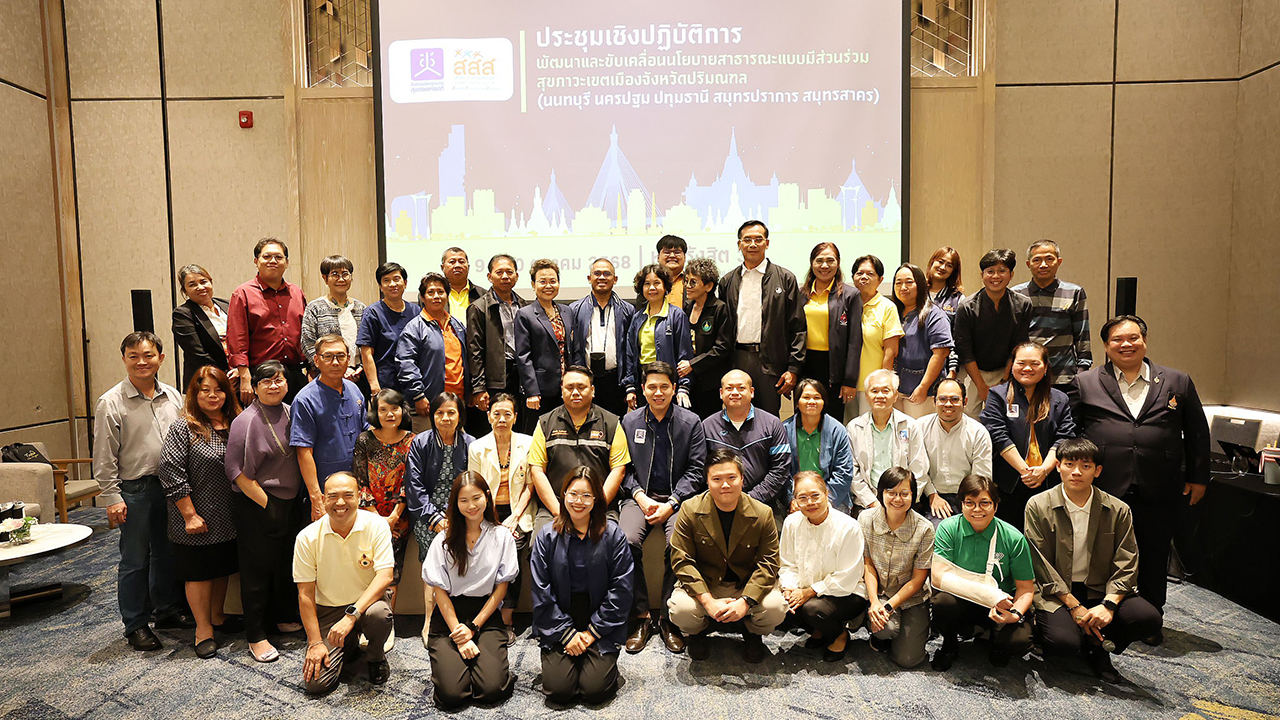 สำนักงานคณะกรรมการสุขภาพแห่งชาติ (สช.) ร่วมกับสำนักงานกองทุนสนับสนุนการสร้างเสริมสุขภาพ (สสส.) จัดประชุมเชิงปฏิบัติการพัฒนาและขับเคลื่อนนโยบายสาธารณะแบบมีส่วนร่วมสุขภาวะเขตเมืองจังหวัดปริมณฑล (นนทบุรี นครปฐม ปทุมธานี สมุทรปราการ สมุทรสาคร) ณ ห้องรังสิต 3 โรงแรมโนโวเทล กรุงเทพ ฟิวเจอร์พาร์ค รังสิต อ.ธัญบุรี จ.ปทุมธานี ระหว่างวันที่ 9-10 ต.ค. 2568 โดยมีกลุ่มสมัชชาสุขภาพจาก 5 จังหวัดปริมณฑลเข้าร่วมประชุม