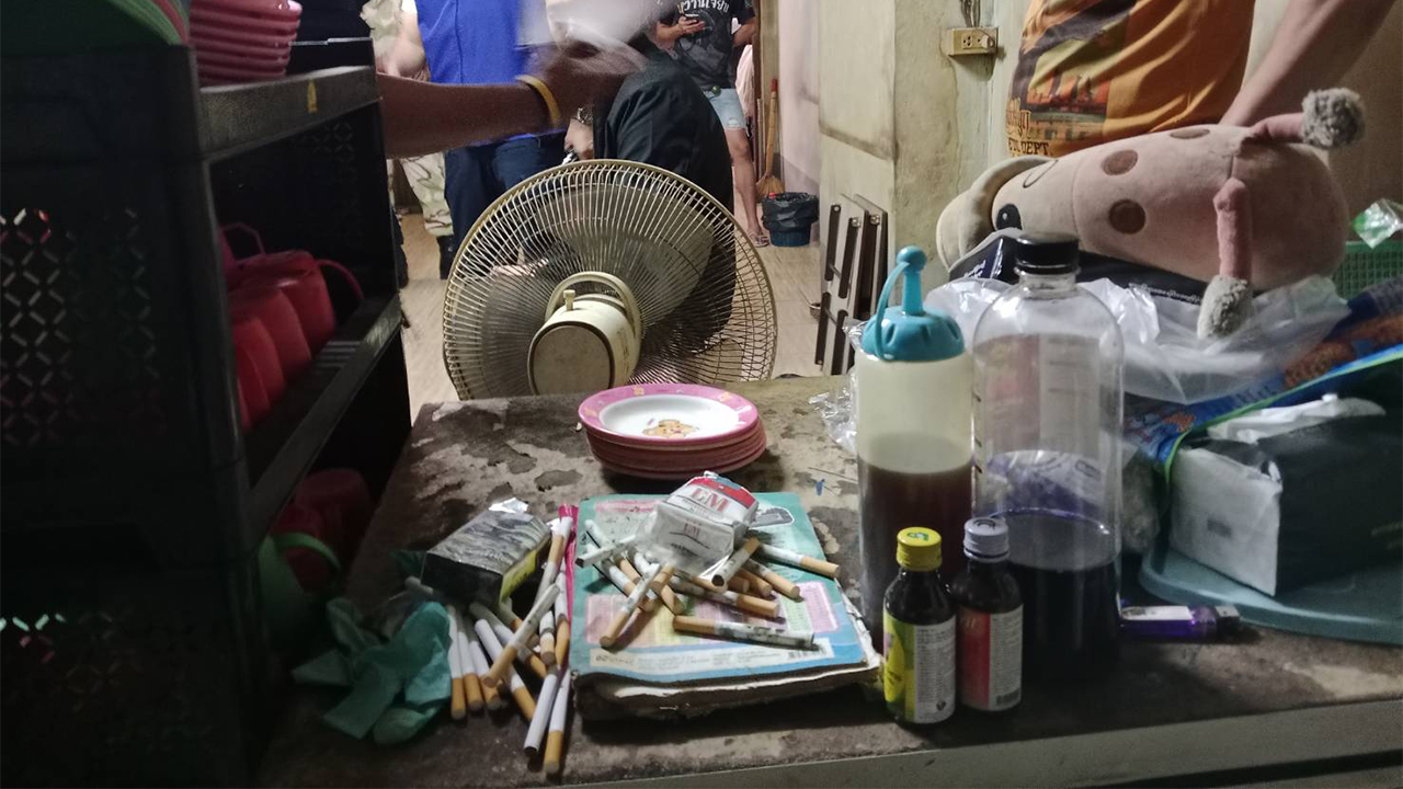จังหวัดสมุทรสาคร ทลายแหล่งมั่วสุมน้ำกระท่อมใกล้สถานศึกษาและชุมชน 2 แห่ง ตลาดโรงไม้ – ชุมชนคลองปีกนก พื้นที่ ต.ท่าทราย ยึดของกลางจำนวนมาก