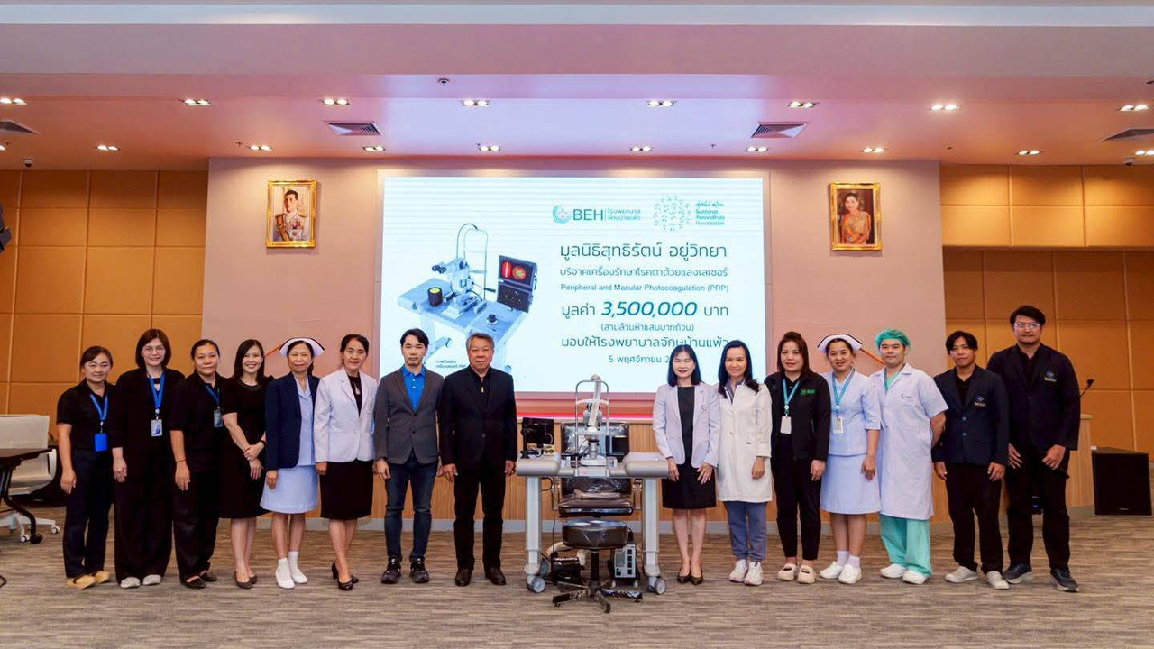 มูลนิธิสุทธิรัตน์ อยู่วิทยา มอบเครื่องรักษาโรคตาด้วยแสงเลเซอร์ (Laser PRP) มูลค่า 3.5 ล้านบาท ให้กับโรงพยาบาลจักษุบ้านแพ้ว จ.สมุทรสาคร ยกระดับการรักษาโรคทางตาที่ซับซ้อน เพิ่มโอกาสในการมองเห็นแก่ ปชช.ผู้รับบริการ พร้อมเป็นพันธมิตรร่วมส่งต่อแสงสว่างให้ผู้ป่วยโรคต้อกระจก ในพื้นที่ชนบทห่างไกลอย่างต่อเนื่อง