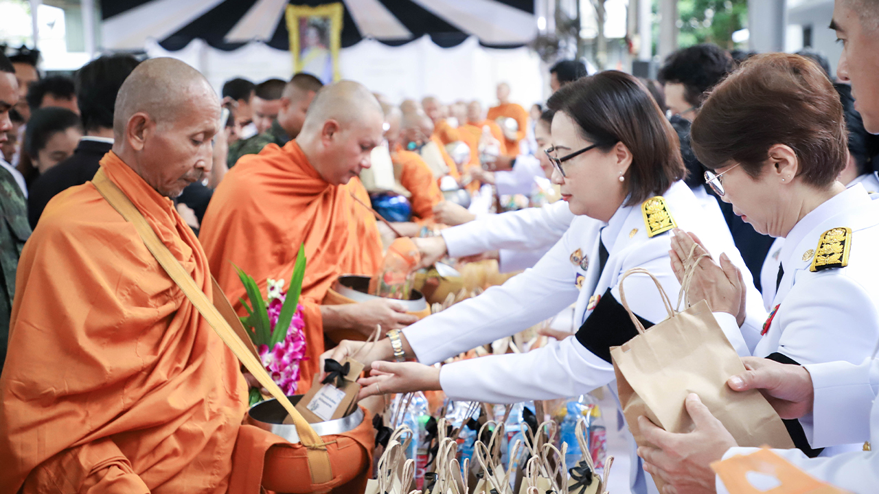 โดยรองผู้ว่าราชการจังหวัด รักษาราชการแทนผู้ว่าราชการจังหวัดสมุทรสาคร ประธานในพิธี จุดธูปเทียนบูชาพระรัตนตรัย ถวายสักการะเบื้องหน้าพระฉายาลักษณ์ สมเด็จพระนางเจ้าสิริกิติ์ พระบรมราชินีนาถ พระบรมราชชนนีพันปีหลวง เจ้าหน้าที่อาราธนาศีล พระราชาคณะ จำนวน 10 รูป ให้ศีล และสวดพระพุทธมนต์ เพื่อถวายเป็นพระราชกุศล จากนั้น ประธานในพิธีและผู้เข้าร่วมถวายจตุปัจจัยไทยธรรมแด่พระสงฆ์ ทอดผ้าไตรถวาย และกรวดน้ำอุทิศถวายพระราชกุศล หลังเสร็จสิ้นพิธีสงฆ์ ประธานในพิธีนำคณะส่วนราชการ ผู้บริหาร ข้าราชการ บุคลากรในจังหวัดสมุทรสาคร และประชาชนทั่วไปร่วมพิธีตักบาตรพระสงฆ์ จำนวน 93 รูป เพื่อถวายเป็นพระราชกุศลโดยพร้อมเพรียงกัน