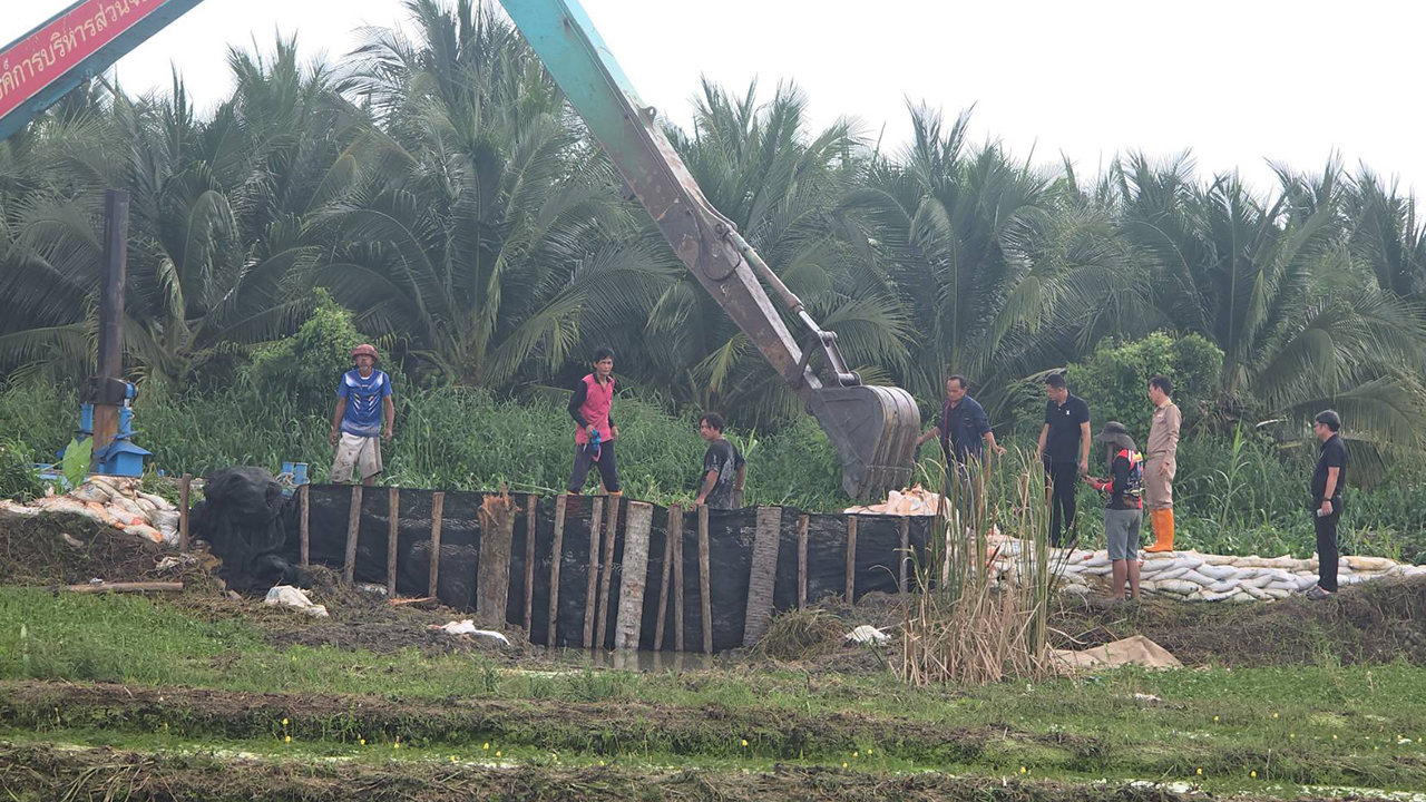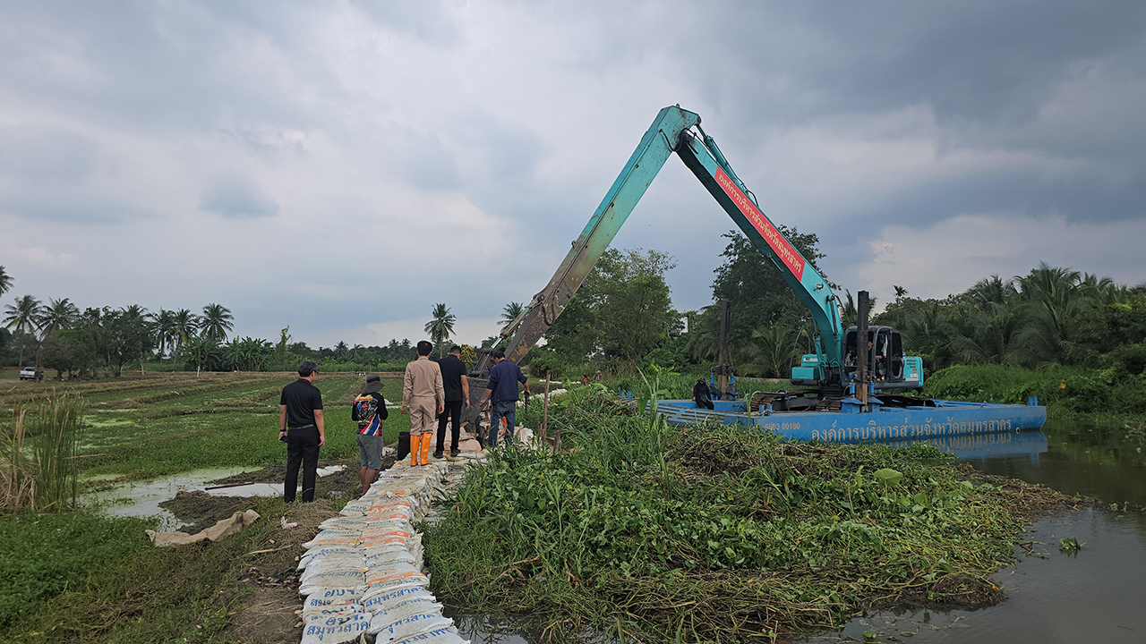 นายก อบจ.สมุทรสาคร ลงพื้นที่ติดตามการเร่งเสริมบิ๊กแบ็กซ่อมแซมคันดินตลิ่งพัง แก้ปัญหาน้ำไหลเข้าท่วมสวน-ที่อยู่อาศัย พื้นที่หมู่ 4 ต.บางยาง