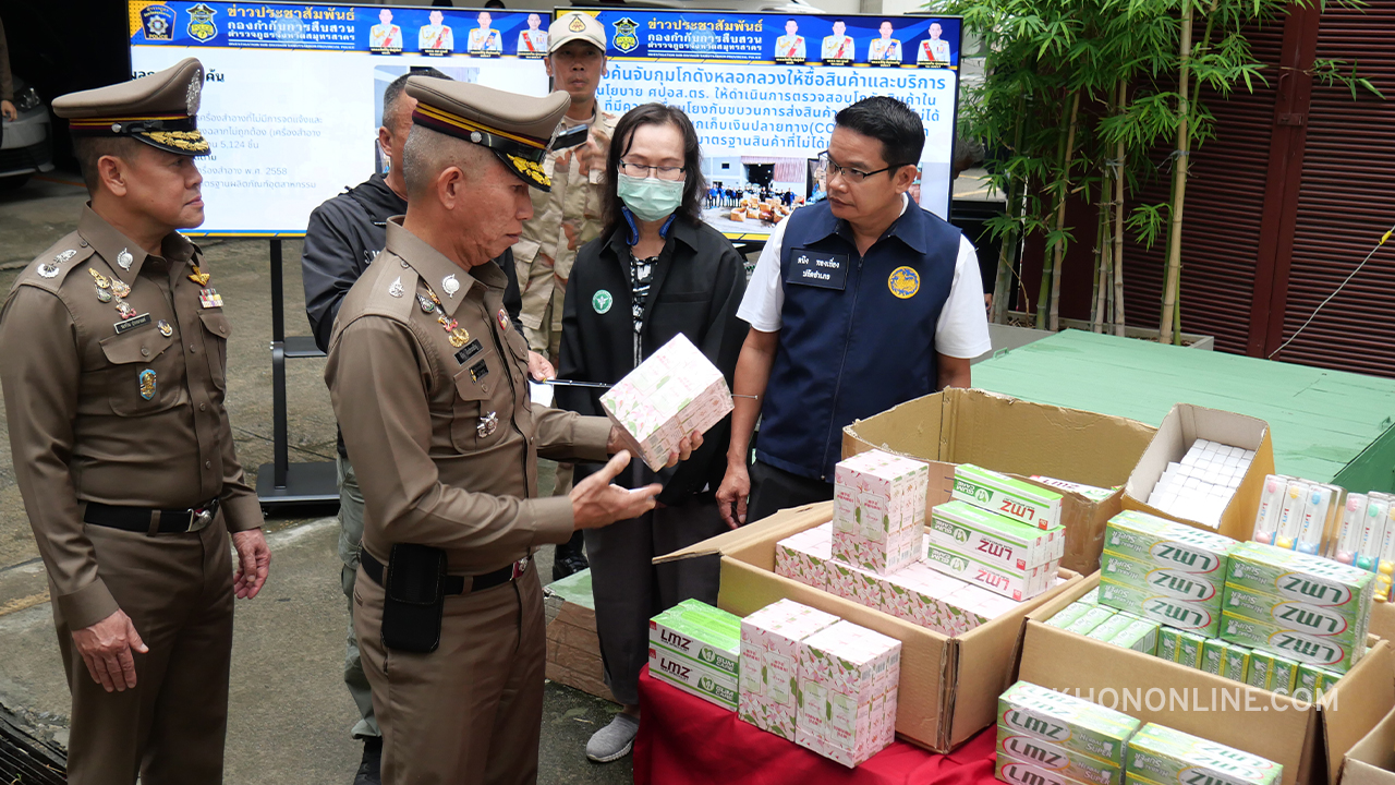 คดีที่ห้า กองกำกับการสืบสวนตำรวจภูธรจังหวัดสมุทรสาคร (กก.สส.ภ.จว.สมุทรสาคร) จับกุมโกดังหลอกลวงให้ซื้อสินค้าและบริการ ในพื้นที่จังหวัดสมุทรสาคร โดยเมื่อเวลา 09.30 น. วันที่ 13 พ.ย. 2568 เจ้าหน้าที่ตำรวจ กก.สส.ภ.จว.สมุทรสาคร ร่วมกับเจ้าหน้าที่ตำรวจ สภ.โคกขาม สำนักงานพาณิชย์จังหวัดสมุทรสาคร สำนักงานอุตสาหกรรมจังหวัดสมุทรสาคร ศูนย์ดำรงธรรมจังหวัดสมุทรสาคร ฝ่ายปกครองอำเภอเมืองสมุทรสาคร สำนักงานสาธารณสุขจังหวัดสมุทรสาคร กำนันตำบลพันท้ายนรสิงห์ และเทศบาลเมืองพันท้ายนรสิงห์ ร่วมกันจับกุม นายหมิงยิง แซ่จ้าว อายุ 28 ปี พร้อมของกลาง สินค้าประเภทเครื่องสำอางที่ไม่มีการจดแจ้ง และไม่มีฉลากหรือแสดงฉลากไม่ถูกต้อง (เครื่องสำอางฉลากภาษาจีน) จำนวน 5,124 ชิ้น จับกุมได้ที่โกดังแห่งหนึ่ง พื้นที่หมู่ 2 ต.พันท้ายนรสิงห์ อ.เมืองฯ จ.สมุทรสาคร โดยนายหมิงยิง เปิดขายสินค้าดังกล่าวผ่านแพลตฟอร์มออนไลน์ต่าง ๆ เชื่อมโยงขบวนการส่งสินค้าที่ประชาชนไม่ได้มีการสั่งซื้อ มีการเรียกเก็บเงินปลายทาง (COD) และส่งสินค้าคุณภาพต่ำ
