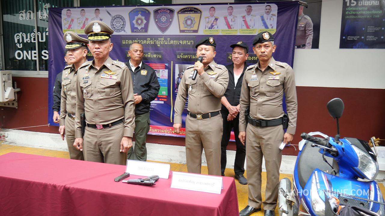 คดีที่เจ็ด สภ.ไร่สะท้อน จ.เพชรบุรี จับกุมผู้ต้องหาคดีฆ่าผู้อื่นโดยเจตนา คือ นายพัฒนะ นิลสุข อายุ 44 ปี ก่อเหตุใช้อาวุธปืนยิงนายรุ่งอรุณ เทียนขำ อายุ 46 ปี เสียชีวิตบริเวณถนนภายในซอย 5 บ้านไร่กร่าง หมู่ 5 ต.ไร่สะท้อน อ.บ้านลาด จ.เพชรบุรี แล้วหลบหนีไป กระทั่งเจ้าหน้าที่ตำรวจฯ ทราบว่านายพัฒนะ หลบหนีมาอยู่ที่คอกวัวแห่งหนึ่ง ในพื้นที่หมู่ 6 ต.กุยเหนือ อ.กุยบุรี จ.ประจวบคีรีขันธ์ จึงเข้าจับกุมตัวเมื่อวันที่ 12 พ.ย. 2568 เวลา 13.30 น. พร้อมอาวุธปืนที่ใช้ก่อเหตุ โอกาสนี้ ทางครอบครัวของนายพัฒนะ ผู้เสียชีวิต ก็ได้เดินทางมาจาก จ.เพชรบุรี เพื่อขอบคุณเจ้าหน้าที่ตำรวจฯ ที่ช่วยติดตามคนร้าย คืนความเป็นธรรมให้แก่ครอบครัวผู้เสียชีวิตด้วย