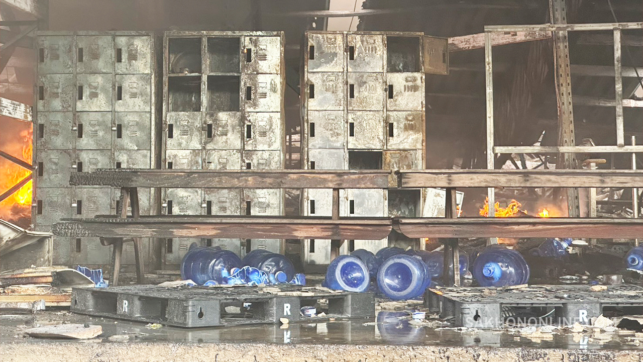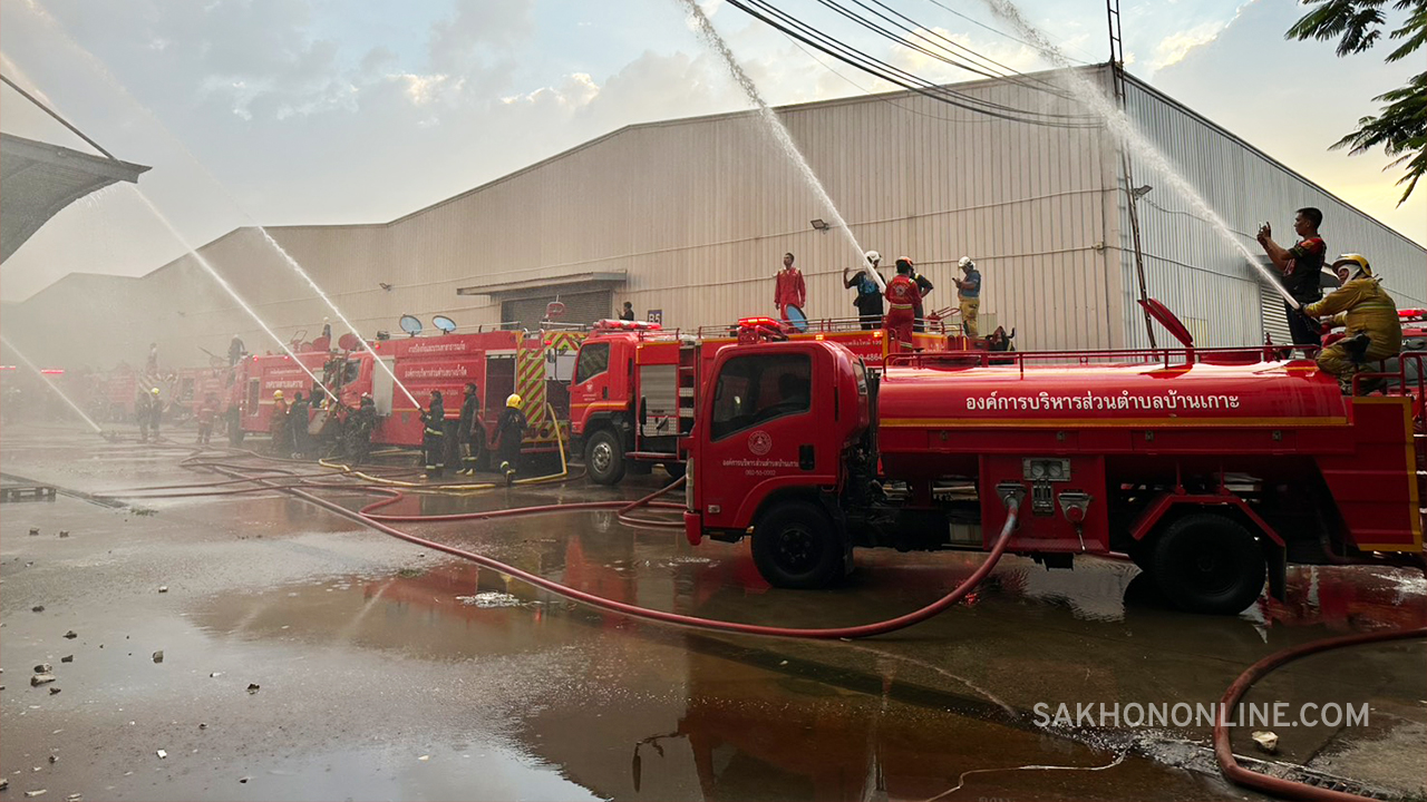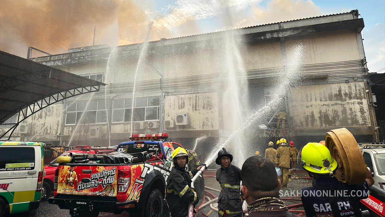 เมื่อเวลา 15.30 น. วันที่ 16 พ.ย. 2568 พ.ต.ท.ภาณุพงศ์ ภาวะบุตร สารวัตรสอบสวน สภ.เมืองสมุทรสาคร รับแจ้งเหตุเพลิงโกดังเก็บสินค้าบริษัท ยูเมย์ โลจิสติกส์ จำกัด เลขที่ 47/45 หมู่ 4 ต.บ้านเกาะ อ.เมืองฯ จ.สมุทรสาคร จึงรายงานผู้บังคับบัญชาทราบ แล้วรุดไปตรวจสอบพร้อมด้วย พ.ต.อ.พิเชษฐ์พงศ์ แจ้งค้ายคม ผกก.สภ.เมืองสมุทรสาคร ร.ต.ประพันธ์ ถึกสกุล นายอำเภอเมืองสมุทรสาคร นายชาตรี โพธิ์อบ นายกเทศมนตรีตำบลบางปลา นายอนุตร ปางพุฒิพงษ์ หน.สนง.ปภ.จังหวัดสมุทรสาคร พร้อมหน่วยงานที่เกี่ยวข้อง รวมทั้งประสานเจ้าหน้าที่ดับเพลิงพร้อมรถน้ำดับเพลิงจากเทศบาลตำบลบางปลา เทศบาลนครสมุทรสาคร เทศบาลเมืองคลองมะเดื่อ เทศบาลตำบลแคราย เทศบาลตำบลนาดี อบต.ท่าทราย อบต.บ้านเกาะ และพื้นที่ใกล้เคียงอีกกว่า 20 คัน เข้าระงับเหตุ