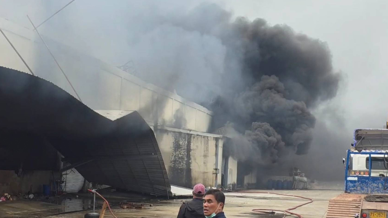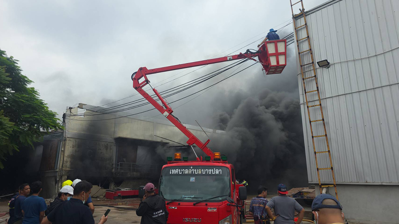 ปะทุขึ้นอีกรอบ เหตุเพลิงไหม้โกดังสินค้าย่านบางปลา จ.สมุทรสาคร เจ้าหน้าที่ฯ เร่งระดมฉีดน้ำต่อเนื่อง เหตุไฟลามไปยังสินค้าภายในชั้นใต้ดิน-อาคารเริ่มทรุด ไม่สามารถลุยเข้าไปดับได้