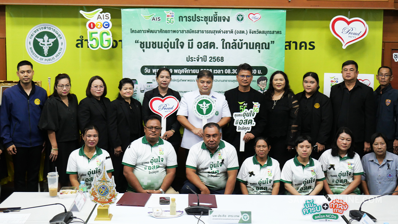 จึงร่วมมือกับสำนักงานสาธารณสุขจังหวัดสมุทรสาคร เดินหน้าสนับสนุนโครงการนี้ เพื่อพัฒนา อสต. ให้มีความรู้ ทักษะ ทัศนคติที่ถูกต้อง และคุณภาพชีวิตที่ดี พร้อมใช้เทคโนโลยีของ AIS ช่วยในการสนับสนุนการสื่อสาร และการเข้าถึงข้อมูลที่ถูกต้องอย่างมีประสิทธิภาพ AIS พร้อมให้การสนับสนุนการจัดอบรมด้วยองค์ความรู้ในเรื่องของ Digital Health & Well-Being ที่ถือเป็นรากฐานของการยกระดับคุณภาพชีวิตคนไทยทุกกลุ่ม