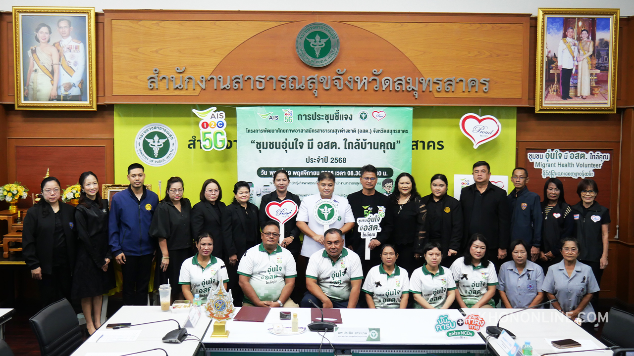 สำนักงานสาธารณสุขจังหวัดสมุทรสาคร ร่วมกับสมาคมพราว และ AIS เปิดตัวโครงการ “ชุมชนอุ่นใจ มี อสต. ใกล้บ้านคุณ” พัฒนาศักยภาพเครือข่ายอาสาสมัครสาธารณสุขต่างชาติ ทั้งด้านสุขภาพ การสื่อสาร และการเข้าถึงข้อมูลความปลอดภัยทางไซเบอร์ที่ถูกต้อง