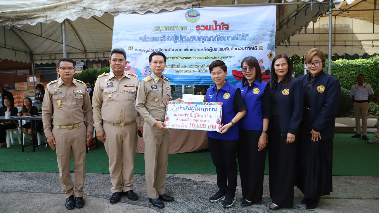 รักษาราชการแทนผู้ว่าฯ สมุทรสาคร ร่วมรับมอบสิ่งของจำเป็นช่วยเหลือผู้ประสบอุทกภัยภาคใต้ พร้อมเชิญชวนประชาชนร่วมปันน้ำใจ ณ หน้าอาคารสำนักงานเหล่ากาชาดจังหวัดสมุทรสาคร ตั้งแต่ 9 โมงเช้าถึง 4 โมงเย็น ระหว่าง 24 – 27 พ.ย. 68