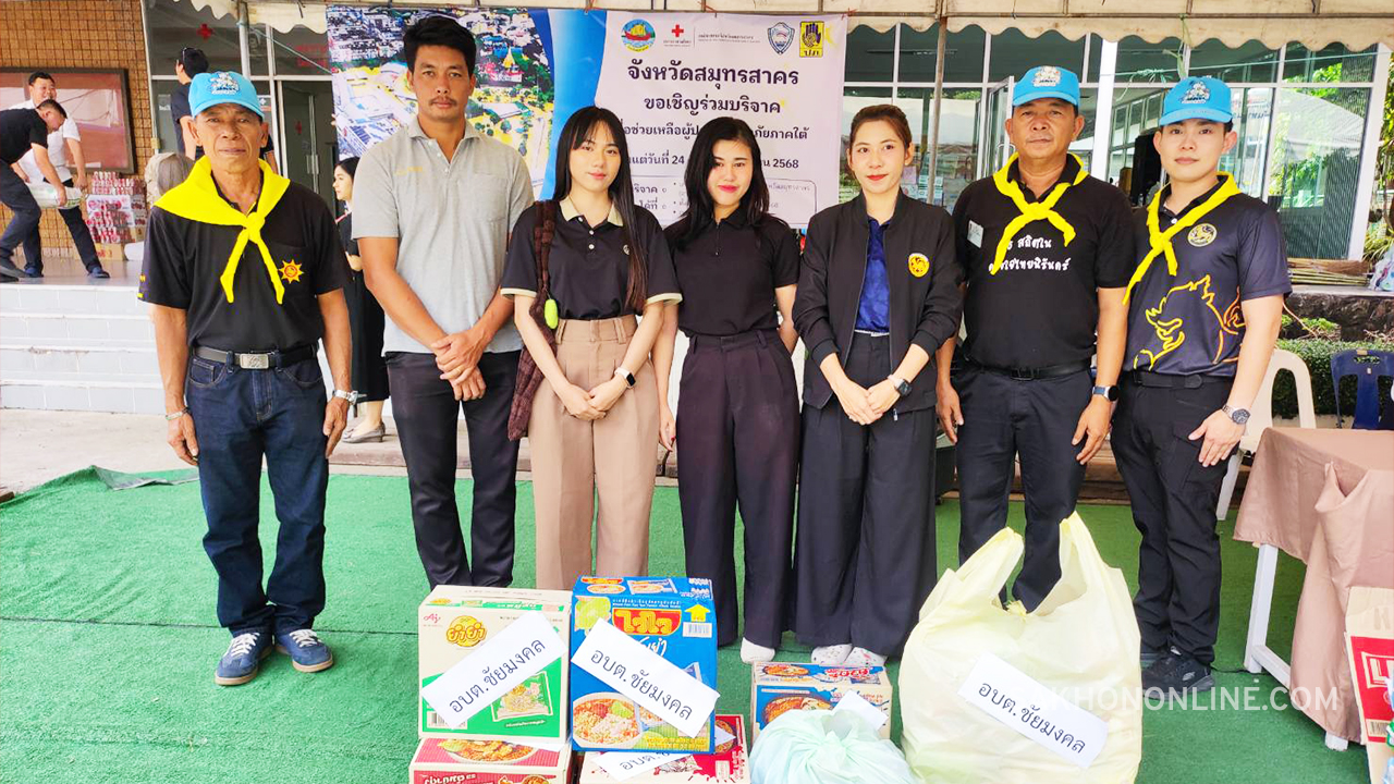 เมื่อวันที่ 25 พ.ย. 2568 ที่หน้าอาคารสำนักงานเหล่ากาชาดจังหวัดสมุทรสาคร ได้มีการเปิดศูนย์รับบริจาคสิ่งของ “สมุทรสาคร รวมน้ำใจ ช่วยเหลือผู้ประสบอุทกภัยภาคใต้” ซึ่งทางจังหวัดสมุทรสาคร ประชาสัมพันธ์ให้หน่วยงานราชการ รัฐวิสาหกิจ ที่ทำการปกครองอำเภอทุกอำเภอ องค์กรปกครองส่วนท้องถิ่น ภาคเอกชน และภาคประชาชน เชิญชวนบริจาคสิ่งของจำเป็น เช่น น้ำเปล่า ข้าวสาร อาหารแห้ง ยารักษาโรค ฯลฯ ตามกำลัง เพื่อนำไปช่วยเหลือผู้ประสบอุทกภัยในพื้นที่ภาคใต้