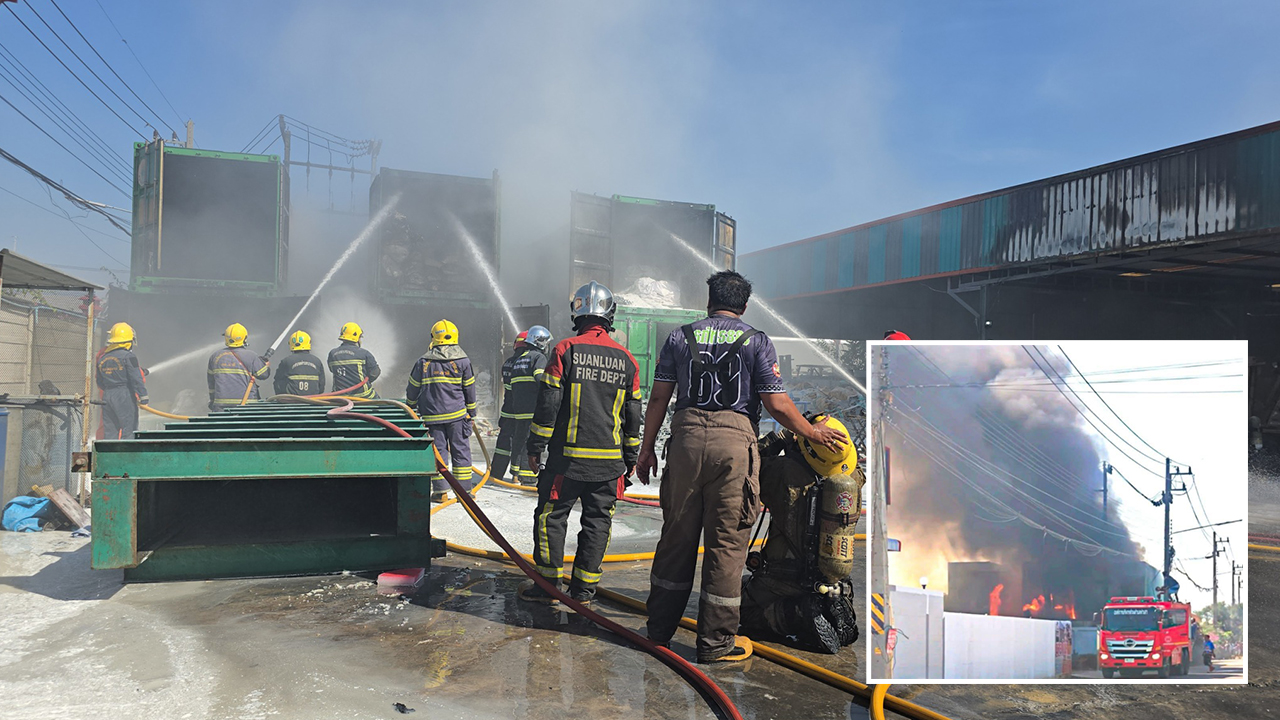 เพลิงเผาวอด 6 ตู้คอนเทนเนอร์ บรรจุวัตถุและสารเคมีทำรองเท้า บริเวณหน้าบริษัทแห่งหนึ่งย่าน ต.ท่าเสา จ.สมุทรสาคร คนงานเผยเป็นของเพื่อนเจ้าของบริษัทฯ เช่าพื้นที่วางตู้คอนเทนเนอร์ ทางด้านนายอำเภอกระทุ่มแบน สั่งกั้นพื้นที่รอตรวจสอบ