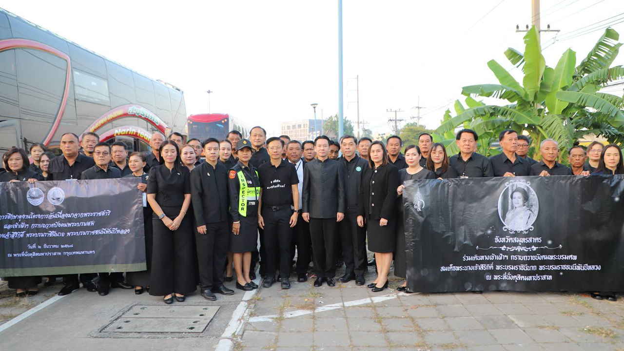 เมื่อเวลา 07.00 น. วันที่ 2 ธ.ค. 2568 ที่บริเวณหน้าร้านครัวต้นกล้วย ถนนพุทธสาคร ต.คลองมะเดื่อ อ.กระทุ่มแบน จ.สมุทรสาคร นายอำนาจ เจริญศรี รองผู้ว่าราชการจังหวัด รักษาราการแทนผู้ว่าราชการจังหวัดสมุทรสาคร ประธานปล่อยขบวนรถ นำประชาชนเดินทางไปเข้าเฝ้ากราบถวายบังคมพระบรมศพ สมเด็จพระนางเจ้าสิริกิติ์ พระบรมราชินีนาถ พระบรมราชชนนีพันปีหลวง โดยมี นายบรรพต จันทรวงษ์ ปลัดจังหวัดสมุทรสาคร นายอุดม ไกรวัตนุสสรณ์ นายก อบจ.สมุทรสาคร นายอำเภอทั้ง 3 อำเภอ หัวหน้าส่วนราชการ องค์กรปกครองส่วนท้องถิ่น และหน่วยงานที่เกี่ยวข้อง เข้าร่วมฯ