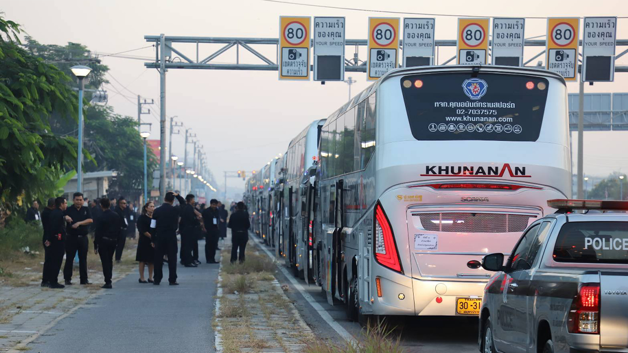 ด้วยจังหวัดสมุทรสาคร ได้จัดเตรียมขบวนรถบัสและรถตู้รองรับประชาชนจากหลายพื้นที่ เพื่อให้ทุกคนสามารถเดินทางไปถวายความอาลัยได้อย่างสะดวกและปลอดภัย โดยมีเจ้าหน้าที่ทุกภาคส่วนร่วมบูรณาการกำกับดูแลด้านความปลอดภัย การบริการ และการจัดระเบียบขบวนรถอย่างเข้มงวด เพื่อให้การเดินทางเป็นไปด้วยความเรียบร้อย โดยในครั้งนี้มีประชาชนจากทั้ง 3 อำเภอ ได้แก่ อำเภอเมืองสมุทรสาคร 7 คันรถบัส อำเภอกระทุ่มแบน 5 คันรถบัส และอำเภอบ้านแพ้ว 5 คันรถบัส รวมจำนวน 750 คน เดินทางเพื่อเข้าเฝ้าฯ กราบถวายบังคมพระบรมศพ สมเด็จพระนางเจ้าสิริกิติ์ พระบรมราชินีนาถ พระบรมราชชนนีพันปีหลวง ณ พระที่นั่งดุสิตมหาปราสาท ในพระบรมมหาราชวัง กรุงเทพมหานคร เพื่อร่วมแสดงความอาลัย และน้อมสำนึกในพระมหากรุณาธิคุณอันหาที่สุดมิได้
