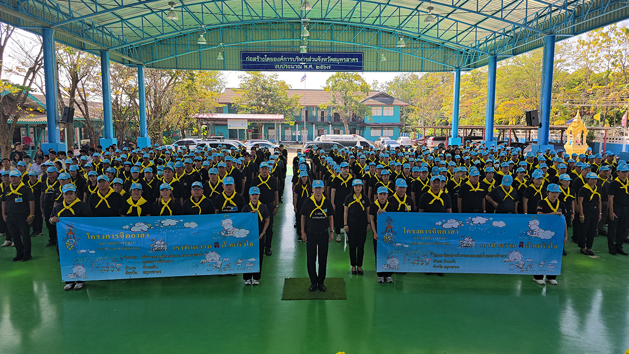 โดยรักษาราชการแทนผู้ว่าราชการจังหวัดสมุทรสาคร ประธานในพิธี ถวายราชสักการะเบื้องหน้าพระบรมฉายาลักษณ์ พระบาทสมเด็จพระบรมชนกาธิเบศร มหาภูมิพลอดุลยเดชมหาราช บรมนาถบพิตร และพระบรมฉายาลักษณ์ พระบาทสมเด็จพระวชิรเกล้าเจ้าอยู่หัว และสมเด็จพระนางเจ้าฯ พระบรมราชินี จากนั้นกล่าวคำถวายราชสักการะ เพื่อแสดงออกถึงความจงรักภักดี และน้อมรำลึกในพระมหากรุณาธิคุณอันหาที่สุดมิได้แด่ในหลวงรัชกาลที่ 9 จากนั้นได้นำจิตอาสา 904 และประชาชนจิตอาสาจากทุกภาคส่วน กล่าวปฏิญาณ “เราทำความดีด้วยหัวใจ” ก่อนร่วมกันลงมือทำความสะอาด ปรับภูมิทัศน์โดยรอบวัด โรงเรียน และเก็บวัชพืชในคลองดำเนินสะดวก