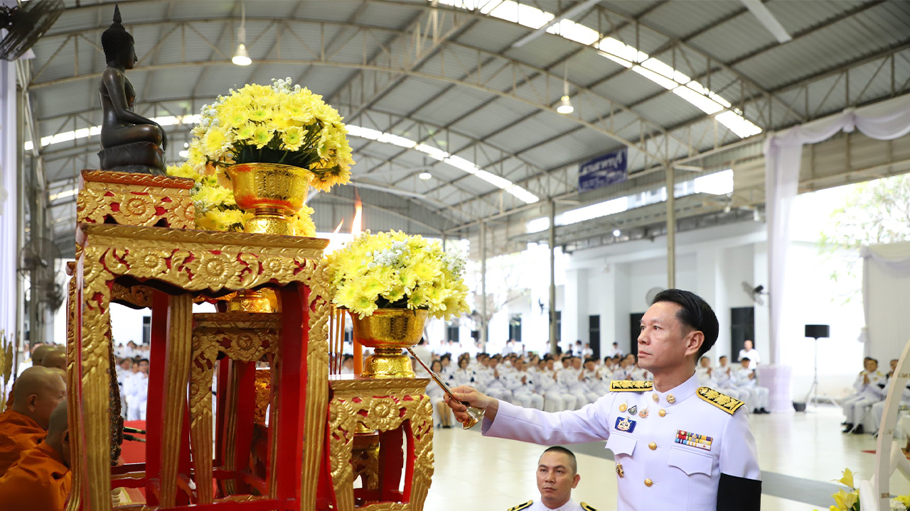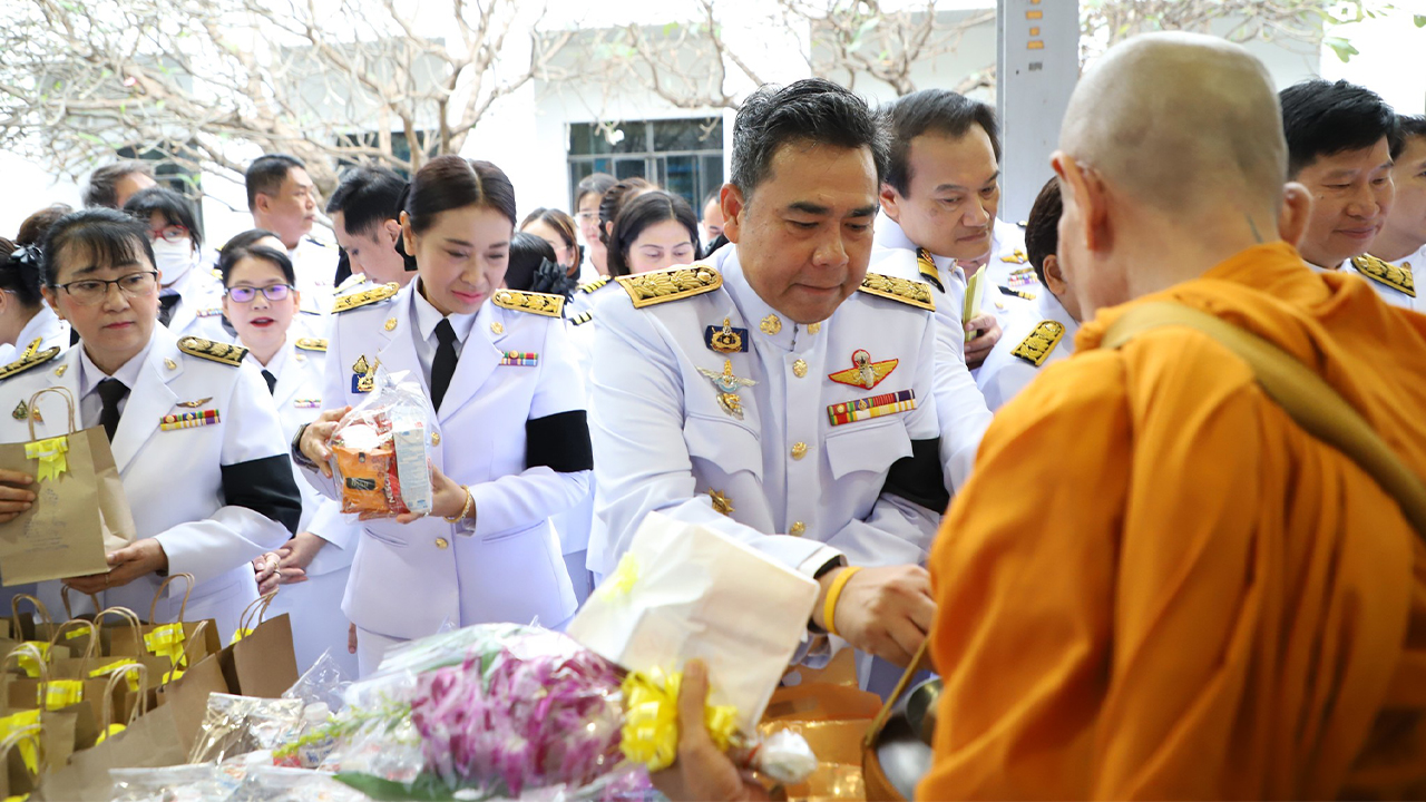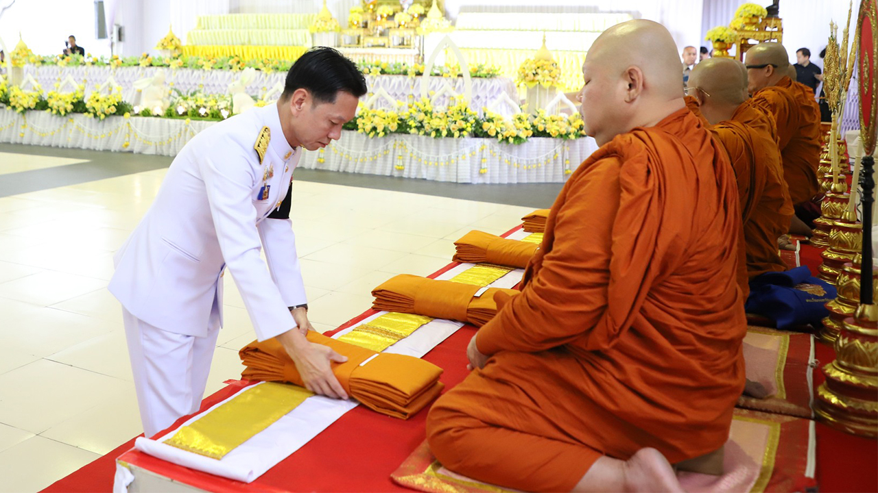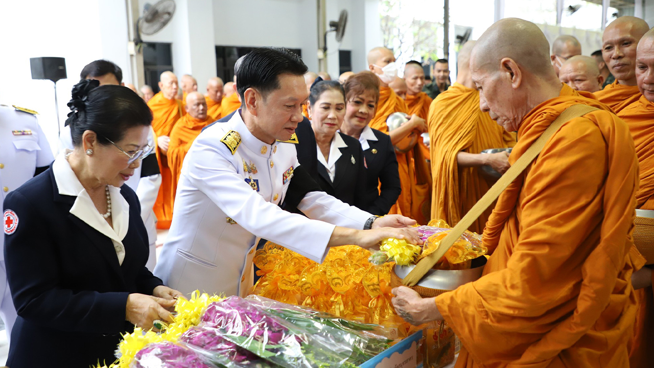 เริ่มต้นเมื่อเวลา 07.30 น. เป็นพิธีเจริญพระพุทธมนต์ และทำบุญตักบาตร ถวายพระราชกุศลฯ ประธานในพิธีจุดธูปเทียนบูชาพระรัตนตรัย จุดธูปเทียนเครื่องทองน้อยเบื้องหน้าพระบรมฉายาลักษณ์ พระบาทสมเด็จพระบรมชนกาธิเบศร มหาภูมิพลอดุลยเดชมหาราช บรมนาถบพิตร จากนั้น พระเทพสาครมุนี ที่ปรึกษาเจ้าคณะภาค 14 ประธานฝ่ายสงฆ์ พร้อมด้วยพระสงฆ์สมณศักดิ์ รวม 10 รูป สวดเจริญพระพุทธมนต์ จบแล้ว ประธานในพิธี พร้อมผู้บริหารจังหวัดสมุทรสาคร ทอดผ้าไตร 10 ไตร พระสงฆ์สดับปกรณ์ ถวายอดิเรก กรวดน้ำและรับพร เป็นอันเสร็จพิธีสงฆ์ จากนั้น ประธานในพิธี นำทุกภาคส่วนทำบุญตักบาตรข้าวสารอาหารแห้ง พระสงฆ์ จำนวน 89 รูป เพื่อถวายเป็นพระราชกุศลฯ