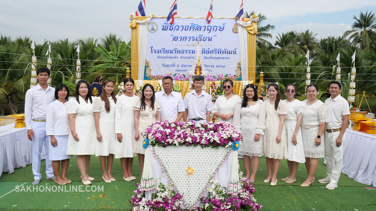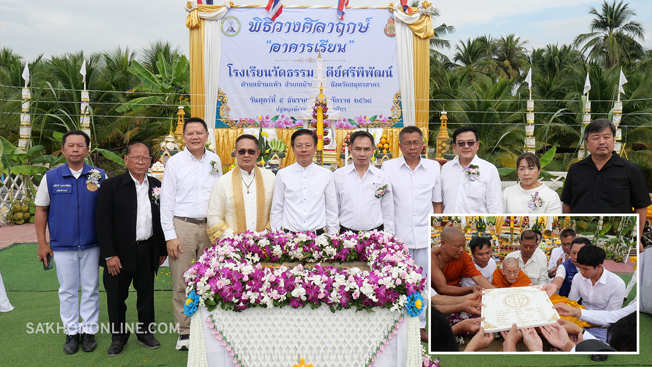 เมื่อเวลา 10.09 น. วันที่ 5 ธ.ค. 2568 พระครูโอภาสธรรมาภรณ์ เจ้าอาวาสวัดธรรมเจดีย์ศรีพิพัฒน์ ที่ปรึกษาเจ้าคณะจังหวัดสมุทรสาคร (ธรรมยุต) ประธานฝ่ายสงฆ์ และนายอุดม ไกรวัตนุสสรณ์ นายก อบจ.สมุทรสาคร ประธานฝ่ายฆราวาส ในพิธีวางศิลาฤกษ์อาคารเรียน โรงเรียนวัดธรรมเจดีย์ศรีพิพัฒน์ อ.บ้านแพ้ว จ.สมุทรสาคร โดยมี นายฐิติพงษ์ เตละวาณิชย์ สมาชิกสภา อบจ.สมุทรสาคร นายปัญญา ชวนบุญ ที่ปรึกษารัฐมนตรีประจำสำนักนายกฯ น.ส.ณตฤณ สุริวงษ์ อดีตนายก อบต.บ้านแพ้ว นายอุดม ละม้ายสกุล ผู้อำนวยการโรงเรียนวัดธรรมเจดีย์ศรีพิพัฒน์ รวมถึงผู้แทนนายอำเภอบ้านแพ้ว คณะกรรมการสถานศึกษา ผู้บริหาร คณะครู นักเรียน และแขกผู้มีเกียรติ เข้าร่วมพิธี