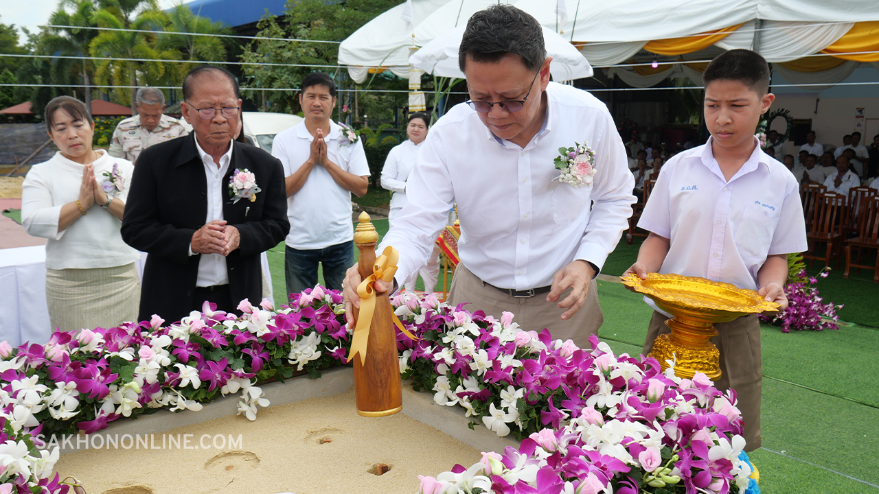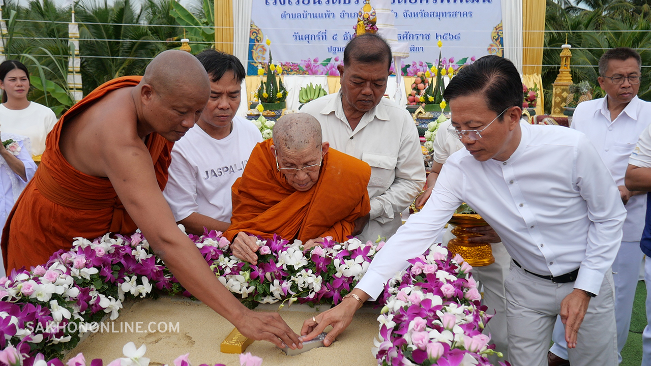 นายก อบจ.สมุทรสาคร ประธานฝ่ายฆราวาส พิธีวางศิลาฤกษ์อาคารเรียน ร.ร.วัดธรรมเจดีย์ศรีพิพัฒน์ อ.บ้านแพ้ว สร้างโอกาสทางการศึกษาแก่เยาวชนในพื้นที่