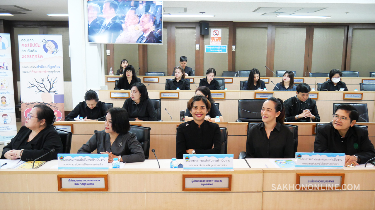 เมื่อเวลา 08.30 น. วันที่ 9 ธ.ค. 2568 นายอำนาจ เจริญศรี ผู้ว่าราชการจังหวัดสมุทรสาคร เป็นประธานในงานวันต่อต้านคอร์รัปชันสากล (ประเทศไทย) ของจังหวัดสมุทรสาคร โดยมี นางนิตรา เพิ่มทรัพย์ ลิ้มกาญจนาพันธ์ ผู้อำนวยการสำนักงาน ป.ป.ช. ประจำจังหวัดสมุทรสาคร นายอุดม ไกรวัตนุสสรณ์ นายก อบจ.สมุทรสาคร พ.อ.พีรภาส บัวเจริญ รอง ผอ.รมน. จังหวัด ส.ค.(ท.) พร้อมหัวหน้าส่วนราชการ นายอำเภอทั้ง 3 อำเภอ หน่วยงานรัฐวิสาหกิจ ผู้นำองค์กรปกครองส่วนท้องถิ่น ภาคเอกชน และภาคประชาสังคม เข้าร่วมกิจกรรม