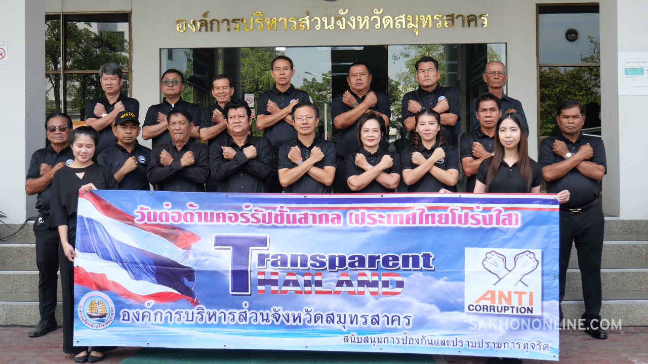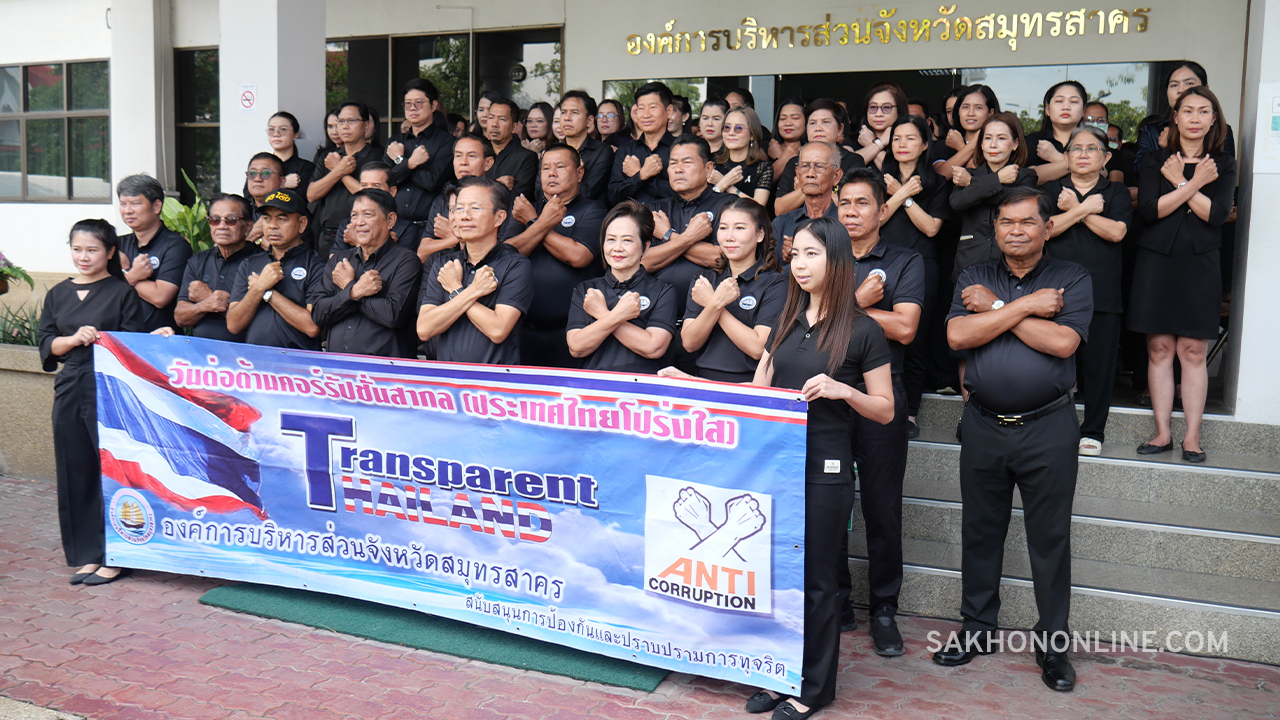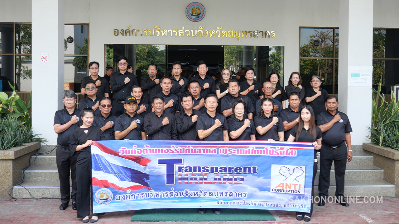 เมื่อเวลา 10.00 น. วันที่ 9 ธ.ค. 2568 ที่บริเวณหน้าสำนักงานองค์การบริหารส่วนจังหวัดสมุทรสาคร นายอุดม ไกรวัตนุสสรณ์ นายก อบจ.สมุทรสาคร พร้อมด้วยคณะผู้บริหาร สมาชิกสภาฯ และบุคลากรในสังกัด อบจ.สมุทรสาคร ร่วมแสดงเชิงสัญลักษณ์ และกล่าวคำปฏิญาณตนเพื่อต่อต้านคอร์รัปชัน เนื่องในวันต่อต้านคอร์รัปชันสากล (ประเทศไทย) ภายใต้โครงการเสริมสร้างคุณธรรมจริยธรรมในการปฏิบัติราชการ ประจำปีงบประมาณ พ.ศ. 2569 ขององค์การบริหารส่วนจังหวัดสมุทรสาคร