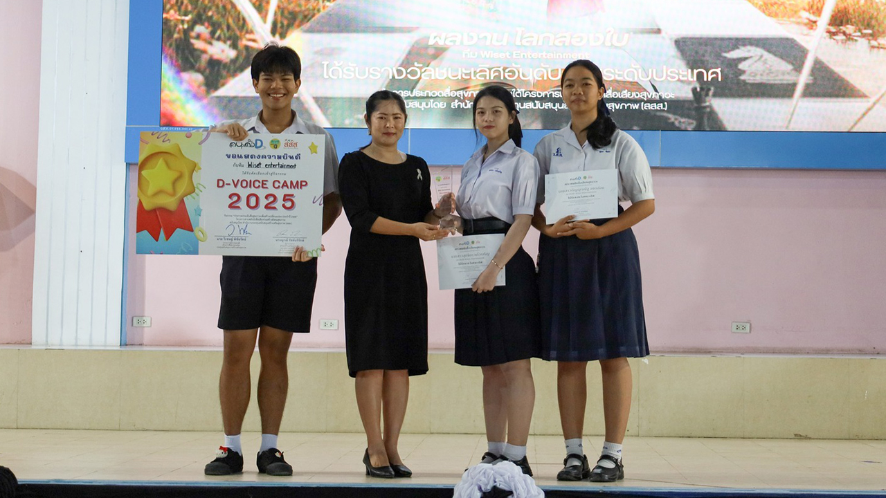 สุดปลื้ม! นักเรียนชั้น ม.6 ของ ร.ร.กระทุ่มแบน “วิเศษสมุทคุณ” คว้ารางวัลชนะเลิศผลงานคลิปสั้นสะท้อนปัญหาสุขภาพจิตในวัยรุ่น ในนามทีม “Wiset Entertainment” จากกิจกรรม “D-Voice Contest 2025” เยาวชนนักสื่อเสียงสุขภาวะ ของ สสส.