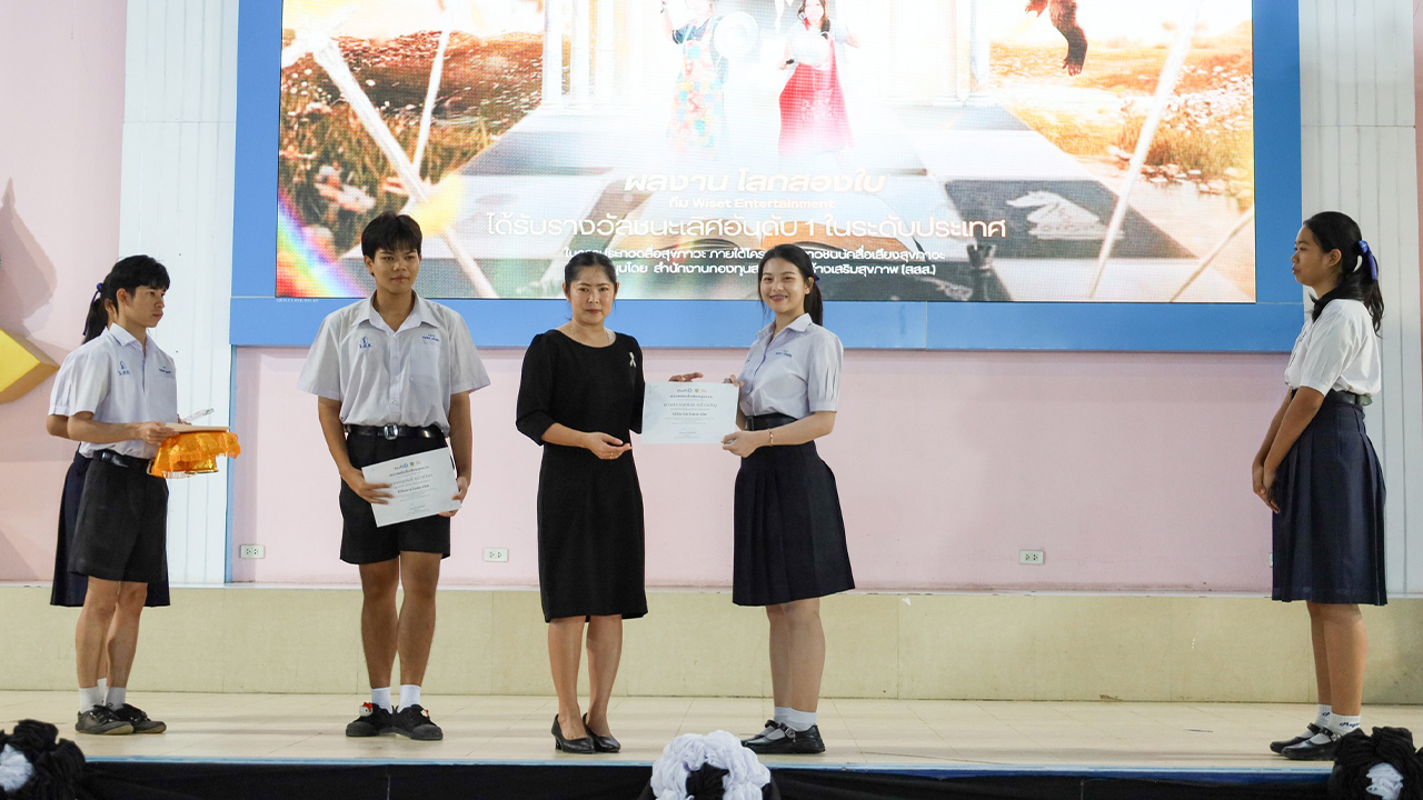 ซึ่งทีม Wiset Entertainment ได้ส่งผลงานคลิปสั้นเรื่อง “โลกสองใบไม่ใช่เรื่องผิด” ถ่ายทอดเรื่องราวของ “สภาวะฝันกลางวัน” หรือ Maladaptive Daydreaming (MD) ซึ่งเกิดจากความเครียด หรือภาวะวิตกกังวลจนสร้างจินตนาการขึ้นมา ส่งผลกระทบต่อการใช้ชีวิต ทั้งต่อการทำงาน การเรียน และความสัมพันธ์กับคนรอบข้าง และได้รับรางวัลชนะเลิศดังกล่าว โดยน้อง ๆ จากทีม Wiset Entertainment ได้รับโล่รางวัล พร้อมเกียรติบัตร และเงินรางวัล จำนวน 10,000 บาท อีกทั้งสร้างชื่อเสียงให้กับทางโรงเรียนกระทุ่มแบน “วิเศษสมุทคุณ” อีกด้วย