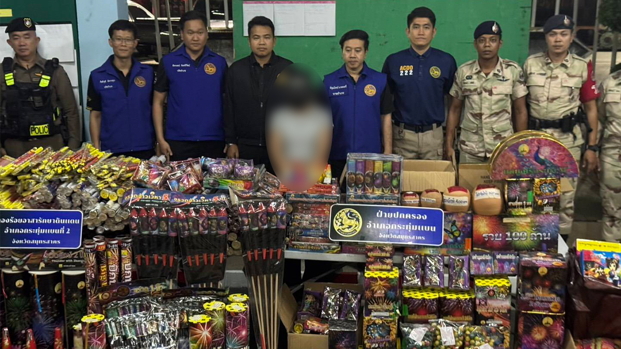 สมุทรสาคร ฝ่ายความมั่นคงอำเภอกระทุ่มแบน ทลายแหล่งลักลอบจำหน่ายพลุ-ดอกไม้เพลิง ผ่านช่องทางออนไลน์ จับกุมสาววัย 34 ปี รับเป็นเจ้าของ พร้อมยึดของกลางจำนวนมาก