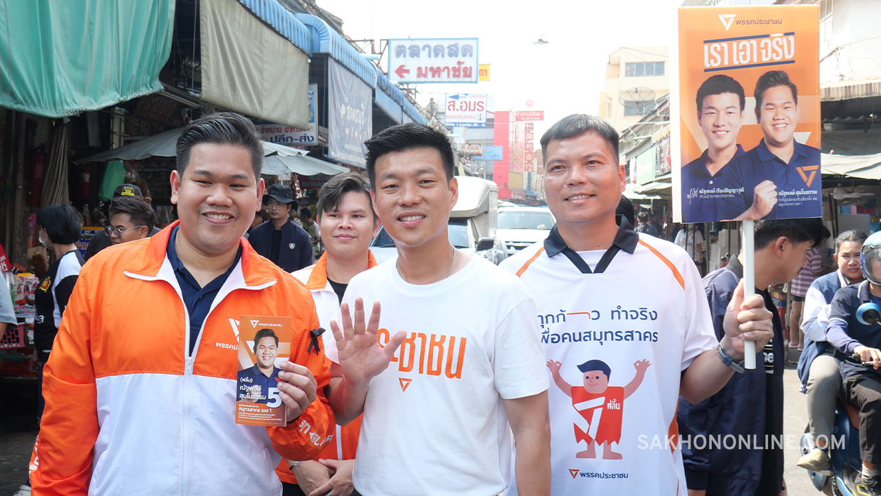 ณัฐพงษ์ เรืองปัญญาวุฒิ หน.พรรคประชาชน นำทีมผู้สมัคร สส. สมุทรสาคร ทั้ง 4 เขต เดินสายอ้อนขอคะแนนเสียงชาวบ้านพื้นที่บ้านแพ้ว มหาชัย บางหญ้าแพรก พร้อมรับฟังปัญหาจากชาวประมง