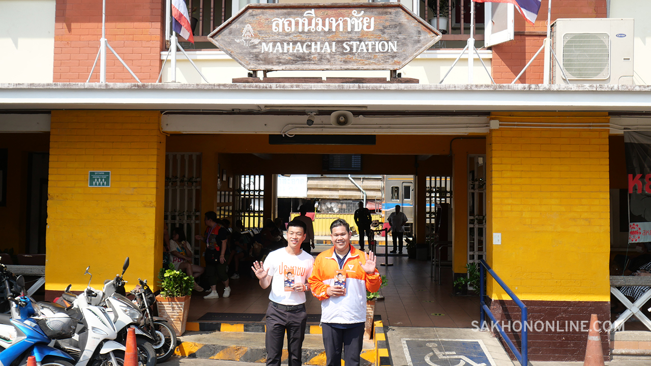 จากนั้นหัวหน้าพรรคประชาชน พร้อมคณะ ลงพื้นที่ตลาดมหาชัย ตั้งแต่บริเวณศาลเจ้าพ่อหลักเมืองสมุทรสาคร ถนนสุขาภิบาล เรื่อยไปจนถึงสถานีรถไฟมหาชัย เพื่อช่วยนายณัฐพงษ์ สุมโนธรรม ผู้สมัคร สส. สมุทรสาคร เขต 1 โดยร่วมแจกแผ่นพับพร้อมแนะนำตัวผู้สมัคร สส. ของทางพรรคฯ ให้กับพ่อค้าแม่ค้าและประชาชนที่จับจ่ายใช้สอยภายในตลาดมหาชัย ก่อนที่จะเดินทางต่อไปยัง ต.บางหญ้าแพรก เพื่อช่วยนายศิรสิทธิ์ สงนุ้ย ผู้สมัคร สส. สมุทรสาคร เขต 2 ขอคะแนนเสียงจากชาวบ้าน และเดินทางต่อไปยัง จ.สมุทรสงคราม