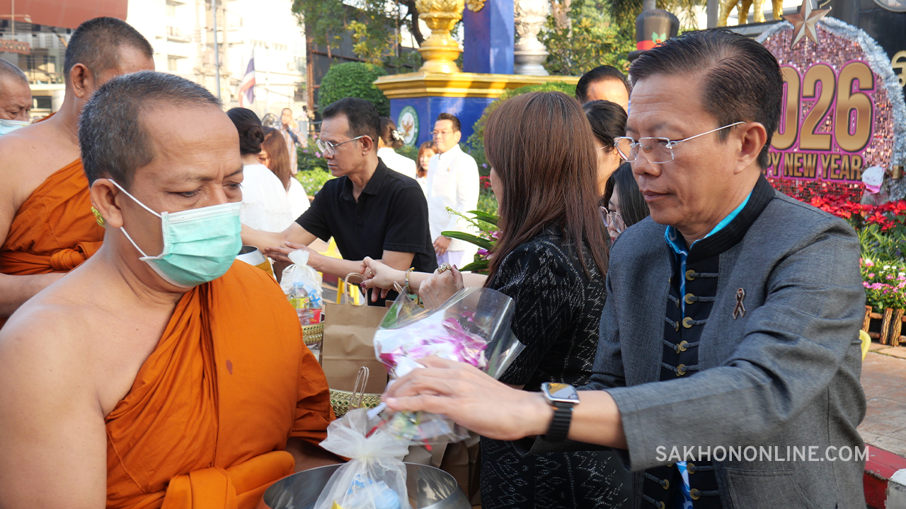 ผู้ว่าราชการจังหวัดสมุทรสาคร ประธานพิธีทำบุญตักบาตร เนื่องในวันขึ้นปีใหม่ 2569 เพื่อความเป็นสิริมงคล ณ บริเวณวงเวียนน้ำพุ