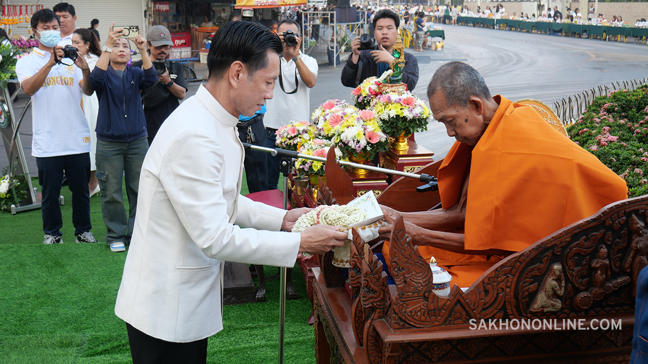 เริ่มต้น พระเทพสาครมุนี ที่ปรึกษาเจ้าคณะภาค 14 เจ้าอาวาสวัดเจษฎาราม (พระอารามหลวง) ได้กล่าวพระสัมโมทนียกถา ด้วยพระคติธรรมจากเจ้าพระคุณ สมเด็จพระอริยวงศาคตญาณ สมเด็จพระสังฆราช สกลมหาสังฆปริณายก ประทานเนื่องในอภิลักขิตสมัยขึ้นปีใหม่ พุทธศักราช 2569 ตามด้วยผู้ว่าราชการจังหวัดสมุทรสาคร กล่าวอวยพรปีใหม่แก่พี่น้องชาวจังหวัดสมุทรสาคร จากนั้นผู้ว่าราชการจังหวัดสมุทรสาคร พร้อมทุกภาคส่วน ร่วมประกอบพิธีทำบุญตักบาตรข้าวสารอาหารแห้งแด่พระสงฆ์ เพื่อความเป็นสิริมงคลแก่ตนเองและครอบครัวรับศักราชใหม่ 2569