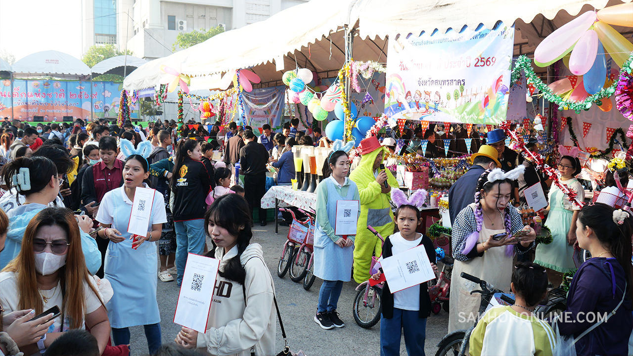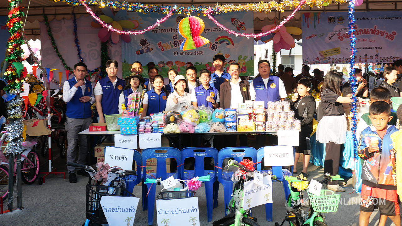 ผู้ว่าฯ สมุทรสาคร ประธานเปิดงานฉลองวัดเด็กแห่งชาติ ปี 2569 “รักชาติไทย ใส่ใจโลก” ร่วมส่งเสริม-ให้ความสำคัญกับการพัฒนาเด็กและเยาวชน หลายหน่วยงานร่วมออกบูธเล่นเกม-แจกของขวัญ แก่น้อง ๆ