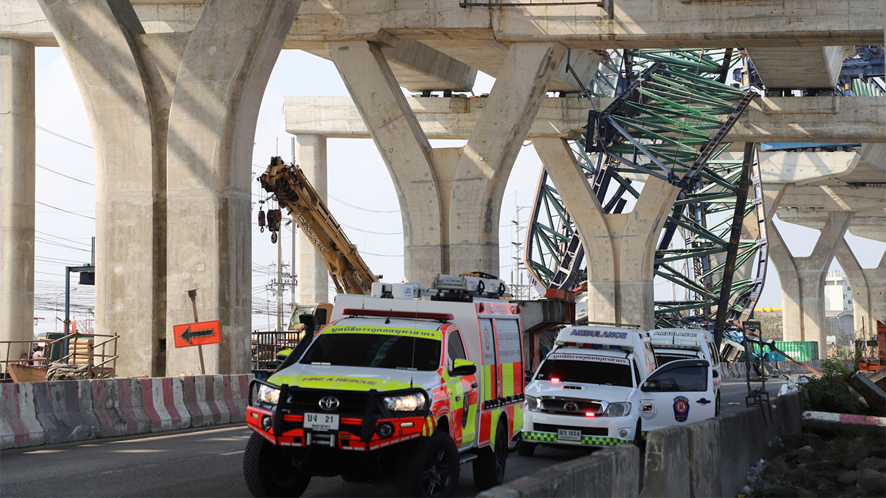 รายงานข่าวแจ้งว่า เมื่อเวลา 09.11 น. วันที่ 15 ม.ค. 2569 เกิดเหตุเครนก่อสร้างถล่มบนถนนพระราม 2 ขาออก กทม. กม.30+300 ถึง 400 ช่องทางหลัก บริเวณหน้าโรงแรมปารีสการ์เด้นอินน์ ก่อนถึงสะพานข้ามแม่น้ำท่าจีน หมู่ 1 ต.ท่าจีน อ.เมืองฯ จ.สมุทรสาคร ซึ่งมาจากการก่อสร้างโครงการทางหลวงพิเศษระหว่างเมือง สายบางขุนเทียน – บ้านแพ้ว (M82) ช่วงเอกชัย – บ้านแพ้ว ตอน 7 ที่เกิดเหตุพบรถยนต์กระบะ 2 คัน ถูกชิ้นส่วนเครนและแท่นปูนทับลงไป เบื้องต้นมีรายงานผู้เสียชีวิต 2 ราย และผู้บาดเจ็บ 5 ราย ขณะเดียวกัน เจ้าหน้าที่กู้ภัยและตำรวจ ได้ดำเนินการจัดการจราจรและช่วยเหลือผู้ประสบภัยอย่างเร่งด่วน มีการปิดการจราจรช่องทางหลัก ถนนพระราม 2 ทั้งขาเข้าและขาออก ตั้งแต่ช่วง กม.28 (แยกต่างระดับมหาชัย) ถึง กม.30 (ก่อนข้ามสะพานแม่น้ำท่าจีน)