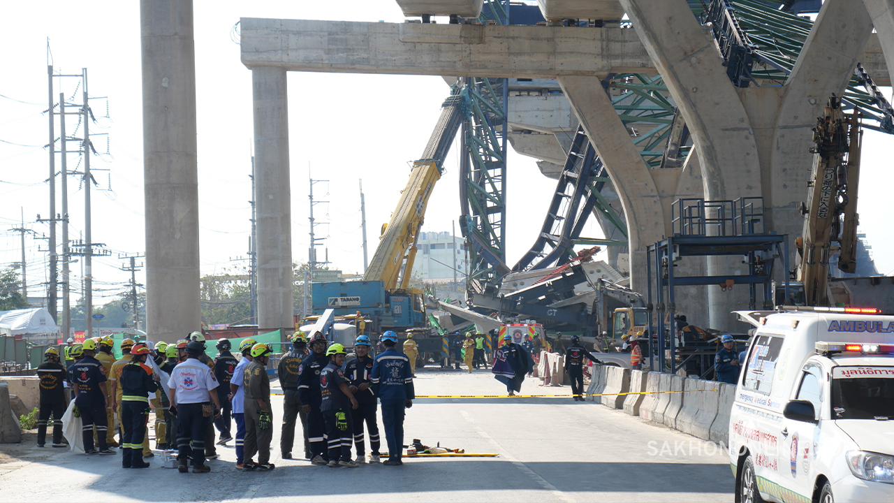 “พิพัฒน์” รองนายกฯ และ รมว.คมนาคม รุดดูเหตุเครนพระราม 2 ถล่ม สั่งกรมทางหลวงหยุดการก่อสร้างในทุกโครงการ ด้านกู้ภัยฯ เดินหน้ากู้ร่างผู้เสียชีวิตทั้ง 2 ราย