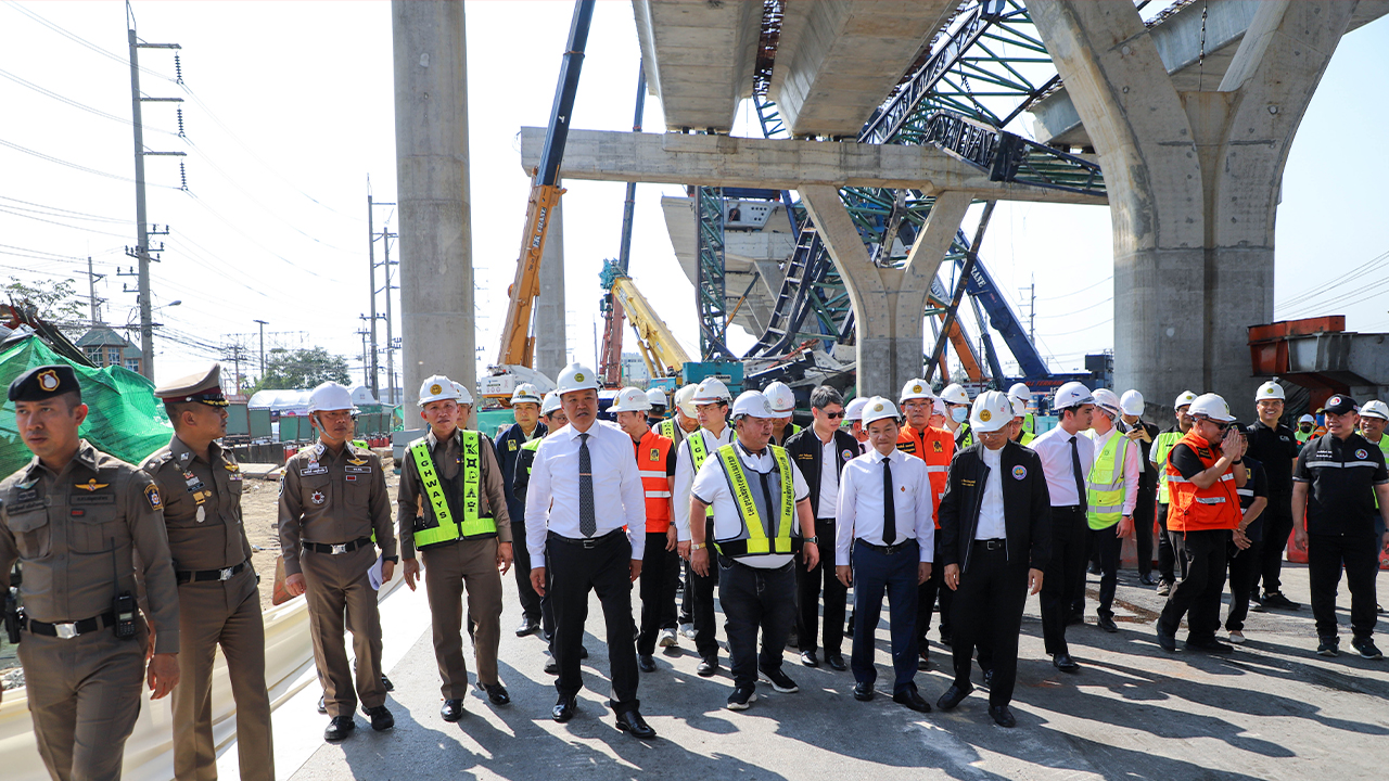 นายอนุทิน ชาญวีระกูล นายกรัฐมนตรี และรัฐมนตรีว่าการกระทรวงมหาดไทย เปิดเผยภายหลังการลงพื้นที่ว่า การเดินทางมาครั้งนี้เพื่อมาดูสภาพหน้างานจริง พร้อมติดตามและรับฟังข้อมูลสรุปจากหน่วยงานที่เกี่ยวข้องอย่างใกล้ชิด โดยความคืบหน้าในขณะนี้อยู่ระหว่างการเร่งเคลียร์พื้นที่และเคลื่อนย้ายโครงสร้างเหล็กขนาดใหญ่ที่มีน้ำหนักมากออกจากผิวจราจร ซึ่งได้กำชับให้เจ้าหน้าที่และทีมวิศวกรดำเนินการด้วยความระมัดระวังสูงสุด และเน้นย้ำให้คำนึงถึงความปลอดภัยของประชาชนผู้ใช้ทางและผู้ปฏิบัติงานเป็นสำคัญ รวมถึงได้สั่งการให้ช่วยเหลือเยียวยาผู้เสียชีวิตและผู้บาดเจ็บอย่างเต็มที่