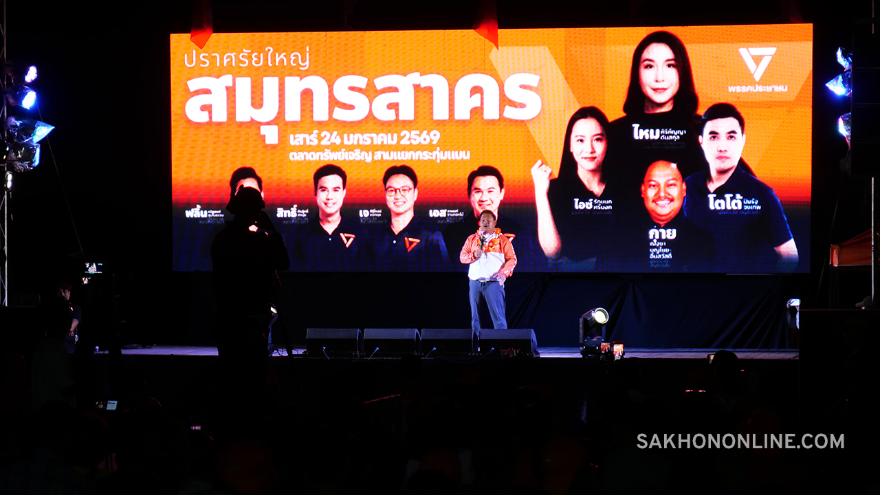 เมื่อวันที่ 24 ม.ค. 2569 พรรคประชาชน (ปชน.) ได้มีการจัดเวทีปราศรัยใหญ่ สมุทรสาคร ณ ลานตลาดทรัพย์เจริญ สามแยกกระทุ่มแบน ต.คลองมะเดื่อ อ.กระทุ่มแบน จ.สมุทรสาคร นำโดย น.ส.ศิริกัญญา ตันสกุล รองหัวหน้าพรรคฯ และแคนดิเดตนายกรัฐมนตรีของพรรคประชาชน พร้อมด้วยผู้สมัคร สส. แบบบัญชีรายชื่อ ได้แก่ นายปิยรัฐ จงเทพ, น.ส.รักชนก ศรีนอก และนายณัฐชา บุญไชยอินสวัสดิ์ รวมถึงผู้สมัคร สส. สมุทรสาคร ทั้ง 4 เขตเลือกตั้ง ประกอบด้วย เขต 1 นายณัฐพงษ์ สุมโนธรรม, เขต 2 นายศิรสิทธิ์ สงนุ้ย, เขต 3 นายศิริโรจน์ ธนิกกุล และเขต 4 นายอานนท์ งามดอกไม้