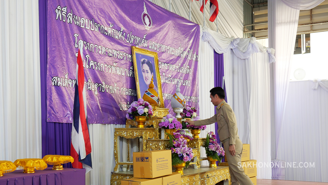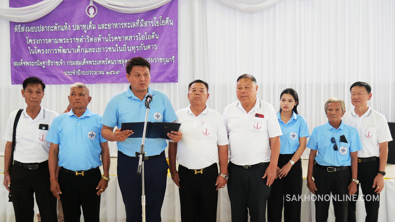 เมื่อเวลา 15.00 น. วันที่ 3 ก.พ. 2569 ที่ลานสาครบุรี ศาลากลางจังหวัดสมุทรสาคร นายอำนาจ เจริญศรี ผู้ว่าราชการจังหวัดสมุทรสาคร เป็นประธานส่งมอบปลาทูเค็ม กะปิ เกลือสมุทร และปลากระป๋อง ตามโครงการพระราชดำริต่อต้านโรคขาดสารไอโอดีน ในสมเด็จพระกนิษฐาธิราชเจ้า กรมสมเด็จพระเทพรัตนราชสุดาฯ สยามบรมราชกุมารี ให้กับ พล.ร.ท.เฉลิมชัย สวนแก้ว ผู้บัญชาการทัพเรือภาคที่ 1 เพื่อนำไปแจกจ่ายให้เด็กนักเรียนและประชาชนในถิ่นทุรกันดาร โดยมี นายมงคล มงคลตรีลักษณ์ นายกสมาคมการประมงสมุทรสาคร นายเผดิม รอดอินทร์ ประมงจังหวัดสมุทรสาคร น.อ.ณัฏฐกฤติ บุญปาลิต รอง ผอ.ศรชล.จว.สค. นายกมล ไกรวัตนุสสรณ์ ประธานชมรมเรืออวนลากสมุทรสาคร นายกำจร มงคลตรีลักษณ์ ประธานคณะกรรมการศาลเจ้าพ่อหลักเมืองสมุทรสาคร รวมถึงหัวหน้าส่วนราชการ นายอำเภอเมืองสมุทรสาคร รองนายก อบจ.สมุทรสาคร สมาชิกชาวประมง สมาชิกไทยอาสาป้องกันชาติในทะเล และแขกผู้มีเกียรติ เข้าร่วมพิธี