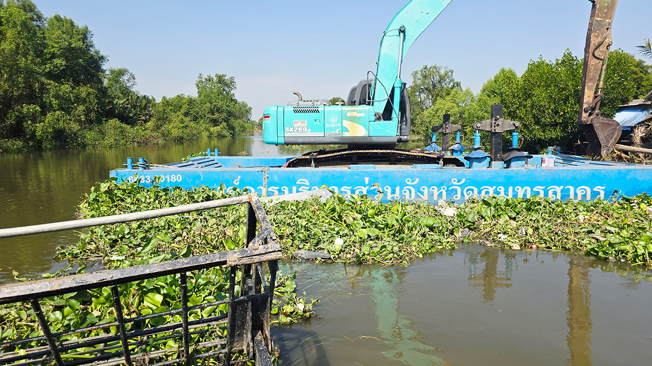 เมื่อเวลา 10.00 น. วันที่ 4 ก.พ. 2569 นายอุดม ไกรวัตนุสสรณ์ นายก อบจ.สมุทรสาคร พร้อมด้วย นายอภิชาต โพธิ์ถนอม รองนายก อบจ.สมุทรสาคร ได้ลงพื้นที่ตรวจติดตามการใช้เรือขุดดินขององค์การบริหารส่วนจังหวัดสมุทรสาคร ดำเนินการขุดดินในคลองสุนัขหอน ต.บางโทรัด อ.เมืองฯ จ.สมุทรสาคร เพื่อวางแนวคันดินกั้นน้ำจากคลองสุนัขหอน ไหลเข้าพื้นที่ด้านชุมชนในจนถึงถนนพระราม 2 ทำให้เกิดสภาพน้ำท่วมพื้นผิวจราจรถนนพระราม 2 ดังเช่นที่ผ่านมา