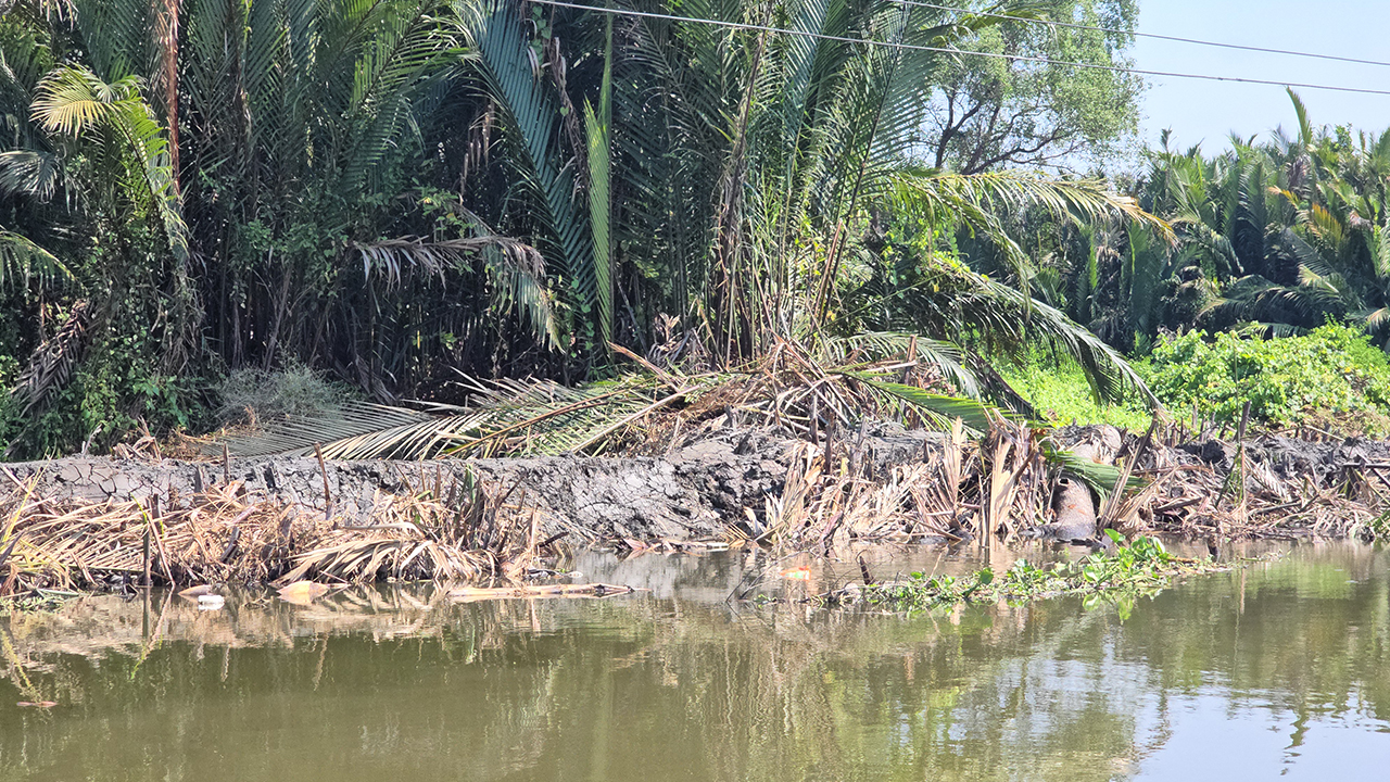 สำหรับความคืบหน้าของการทำแนวคันดินกั้นน้ำนั้น ขณะนี้ทางเรือขุดดินของ อบจ.สมุทรสาครได้วางแนวคันดินไปแล้วประมาณ 1 กม. ตามข้อเสนอแนะของแขวงทางหลวงสมุทรสาคร ในช่วงจุดสำคัญที่ส่วนใหญ่จะเป็นพื้นที่ป่าจาก มีลำรางเล็ก ๆ และคลองซอย 1 คลอง กับ คลองบางฝ้าย จากนั้นจะมีการวางแนวคันดินในจุดที่มีความเสี่ยงต่อดินสไลด์ หรือจุดไหลผ่านของน้ำจากคลองสุนัขหอนเข้าสู่พื้นที่ด้านในจนถึงถนนพระราม 2 ซึ่งการวางแนวคันดินในรูปแบบนี้เป็นการป้องน้ำจากริมคลองไม่ให้ไหลเข้าไป หรือลอดผ่านเข้าไปได้น้อยที่สุดเวลาที่น้ำในคลองสุนัขหอนมีระดับที่สูงขึ้นอันเนื่องจากน้ำทะเลหนุนสูง เป็นการชะลอปริมาณน้ำ แต่พอเวลาที่น้ำทะเลลดระดับลงแล้ว หากพื้นที่ด้านในบางจุดที่มีระดับน้ำขังสูง เพราะไม่สามารถไหลกลับออกสู่คลองสุนัขหอนได้นั้น ก็จะใช้วิธีวางท่อพญานาคสูบออกแทน