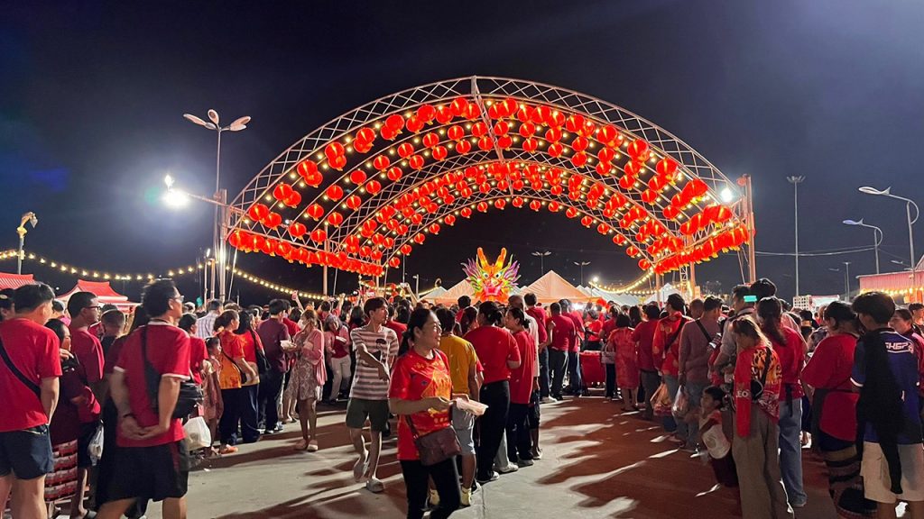 วานนี้ (16 ก.พ.) เวลา 22.30 น. นายอำนาจ เจริญศรี ผู้ว่าราชการจังหวัดสมุทรสาคร เป็นประธานในพิธีไหว้เทพเจ้าไฉ่ซิงเอี๊ย (หยกขาว) เทพเจ้าแห่งโชคลาภและความมั่งคั่ง และผัดหมี่มงคลกระทะยักษ์แจกประชาชนเพื่อความเป็นสิริมงคล ภายในงานสืบสานประเพณีวัฒนธรรมไทย-จีน “ตรุษจีน เล่ง เกีย ฉู่ สืบสานตำนานมังกร” ประจำปี 2569 ณ ริมเขื่อนศาลเจ้าพ่อหลักเมืองสมุทรสาคร ต.มหาชัย อ.เมืองฯ จ.สมุทรสาคร โดยมี นายดำรงศักดิ์ ยอดทองดี รองผู้ว่าราชการจังหวัดสมุทรสาคร นายกำจร มงคลตรีลักษณ์ ประธานกรรมการบริหารศาลเจ้าพ่อหลักเมืองสมุทรสาคร รวมถึงหน่วยงานภาครัฐ ภาคเอกชน และประชาชนเข้าร่วมพิธีเป็นจำนวนมาก