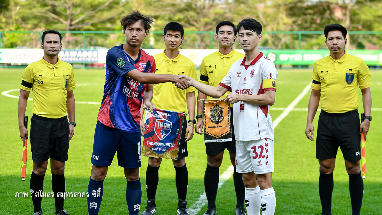การแข่งขันฟุตบอล บีวายดี ดอลฟิน ลีก 3 (ไทยลีก 3) ฤดูกาล 2025/26 โซนภาคตะวันตก สัปดาห์ที่ 18 เกมคู่ระหว่าง “พยัคฆ์สาคร” สมุทรสาคร ซิตี้ ทีมจ่าฝูงของตาราง บุกไปเยือน “ม้าศึกฝั่งธน” ธนบุรี ยูไนเต็ด ทีมรองจ่าฝูง ที่สนามธนบุรี สเตเดียม กรุงเทพฯ เมื่อวันที่ 21 ก.พ. 2569 เวลา 16.00 น. โดยรูปเกมทั้งสองทีมสู้กันได้อย่างสมน้ำสมเนื้อ สมุทรสาคร ซิตี้ ได้ประตูขึ้นนำอย่างรวดเร็วจากลูกยิงของ หลุยส์ เฟลลิเป้ ในนาที 9 แต่เจ้าบ้านธนบุรี ยูไนเต็ด ตามตีเสมอในช่วงครึ่งหลัง จากฝีเท้าของ นราธิป เครือรัญญา ในนาที 77 จบเกมทั้งสองทีมเสมอกัน 1-1 แบ่งกันไปทีมละ 1 คะแนน