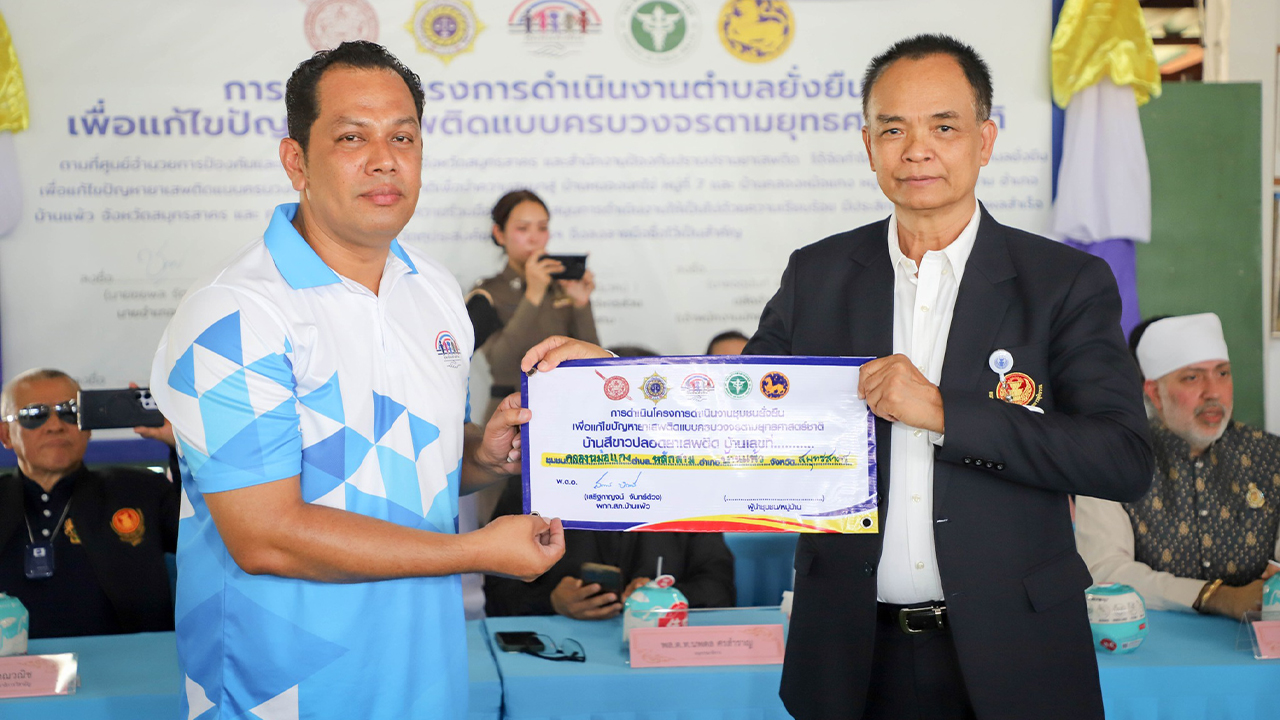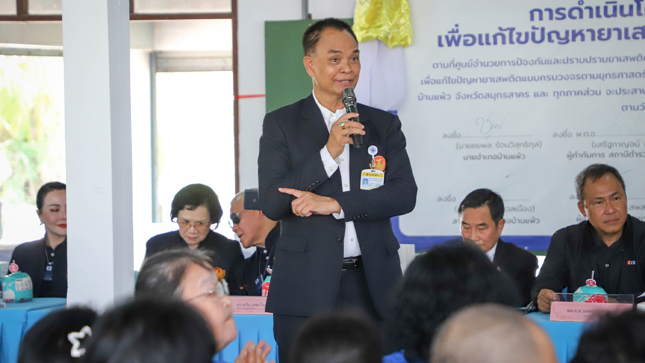 คณะกรรมาธิการวิสามัญการพิทักษ์และเทิดทูนสถาบันพระมหากษัตริย์ วุฒิสภา ลงพื้นที่ตรวจเยี่ยมโครงการสร้างชุมชนเข้มแข็งในแก้ไขปัญหายาเสพติดอย่างยั่งยืน พื้นที่หมู่ 7 และ 8 ต.หลักสาม จ.สมุทรสาคร เน้นสื่อสารสร้างภูมิคุ้มกันสังคม