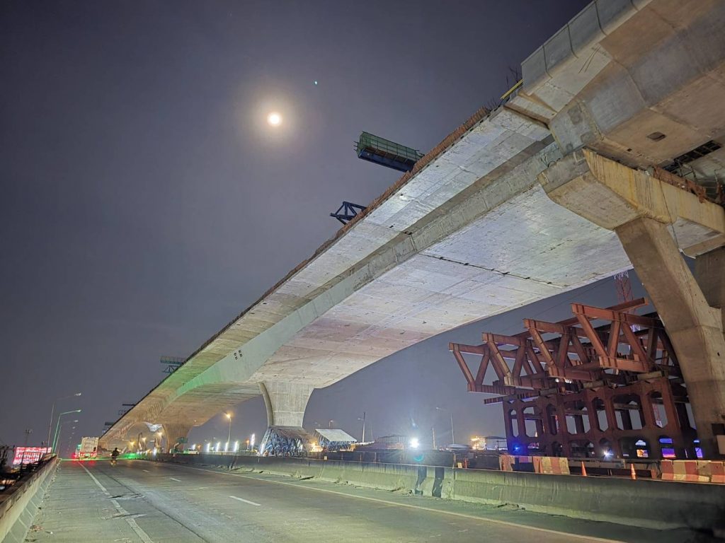 สำหรับภาพรวมโครงการ M82 ช่วงบางขุนเทียน – บ้านแพ้ว ระยะทางรวม 24.6 กิโลเมตร ขณะนี้มีความคืบหน้าไปมาก โดยจากการแบ่งงานทั้งหมด 13 ตอน ดำเนินการก่อสร้างเสร็จสมบูรณ์แล้ว 9 ตอน รวมระยะทางประมาณ 19.13 กิโลเมตร และคงเหลือเพียง 4 ตอนสุดท้าย คือ ตอนที่ 4, 5, 6 และ 7 ระยะทางรวมประมาณ 5.47 กิโลเมตรที่ยังอยู่ระหว่างดำเนินการ ซึ่งในส่วนของตอนที่ 5 และตอนที่ 6 นั้น ปัจจุบันมีความคืบหน้าสะสมเฉลี่ยร้อยละ 96 และร้อยละ 89 ตามลำดับ โดยงานที่เหลือส่วนใหญ่เป็นงานเก็บรายละเอียดโครงสร้างและการติดตั้งอุปกรณ์ความปลอดภัย ซึ่งคาดว่าจะแล้วเสร็จตามลำดับงานในเร็วๆ นี้