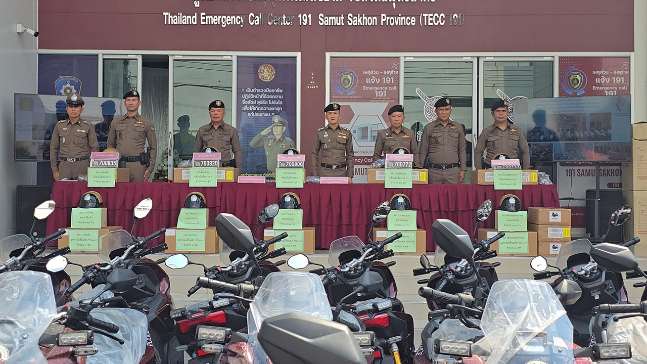 1. สถานีตำรวจภูธรเมืองสมุทรสาคร ได้รับรถจักรยานยนต์ จำนวน 50 คัน หมวกนิรภัย จำนวน 100 ใบ กล้องบันทึกภาพ จำนวน 100 ชุด และอุปกรณ์เชื่อมต่อแท่นชาร์จถ่ายโอนข้อมูล จำนวน 1 เครื่อง