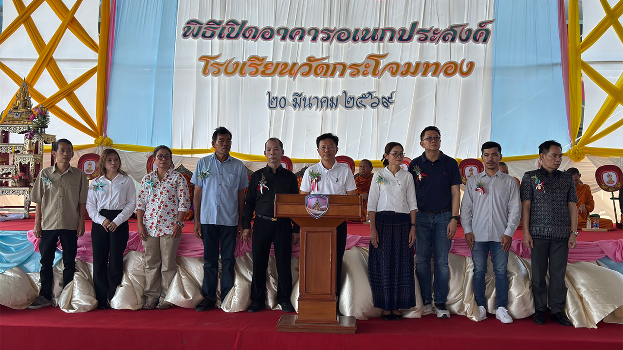 เมื่อเวลา 10.00 น. วันที่ 20 มี.ค. 2569 นายอุดม ไกรวัตนุสสรณ์ นายก อบจ.สมุทรสาคร เป็นประธานพิธีเปิดอาคารอเนกประสงค์โรงเรียนวัดกระโจมทอง ต.หลักสอง อ.บ้านแพ้ว จ.สมุทรสาคร โดยมี นายมณฑล ไกรวัตนุสสรณ์ อดีต รมช.เกษตรและสหกรณ์ น.ส.ภารดี เผือกโสภา นายอำเภอบ้านแพ้ว นายฐิติพงษ์ เตละวาณิชย์ สมาชิกสภา อบจ.สมุทรสาคร นายจิโรจน์ ทองเต็ม นายก อบต.หลักสอง นายคงศักดิ์ ชุนถนอม ผู้อำนวยการโรงเรียนวัดกระโจมทอง รวมถึงกำนัน ผู้ใหญ่บ้าน ผู้บริหารสถานศึกษา คณะครูและนักเรียนเข้าร่วมพิธี