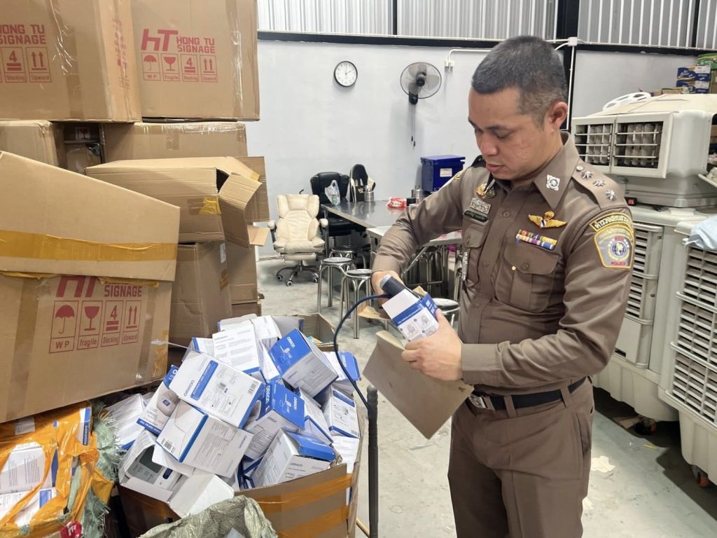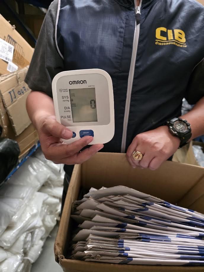 ตำรวจ บก.ปอศ. บุกโกดังใน ต.บ้านเกาะ เมืองสมุทรสาคร รวบเครื่องวัดความดันเลือดปลอม ยี่ห้อดัง Omron กว่า 1 พันเครื่อง มูลค่ากว่า 2.24 ล้านบาท หลังขายเกลื่อนผ่านออนไลน์ เตือนใช้ของปลอมอันตรายถึงชีวิต เสี่ยงภาวะสโตรก